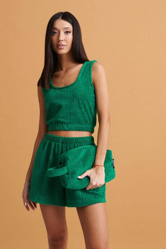 Стильная яркая сумочка-косметичка выполнена из фактурного яркого полотна. Характеристики: прямоугольная форма, застежка - замочек, подкалка цвета капучино, внутри изделия кармашек, по боковому полотну ручка - выполнена из ткани основного изделия.