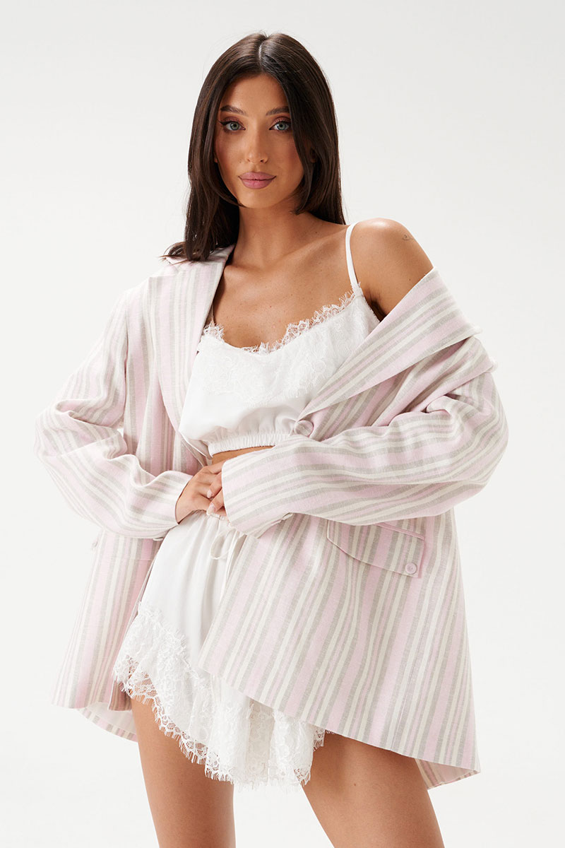 Шорты свободного кроя выполнены из струящейся ткани белого цвета. Характеристики: свободный крой, пояс на резинке с кулиской, по низу шорты украшены ажурным кружевом.