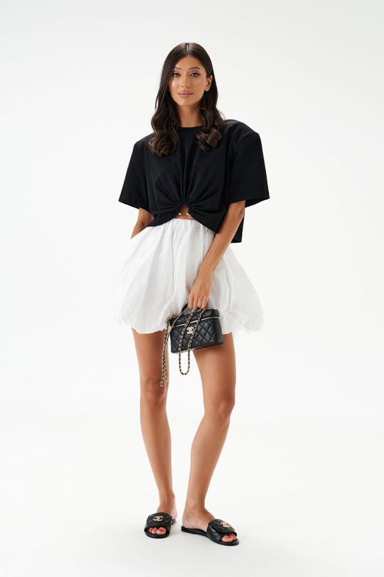Юбка-баллон. Выполнена из полотна "тафта" белого цвета. Характеристики: хлопковая подкладка, пояс на резинке, верх и низ дополнительно присборен.