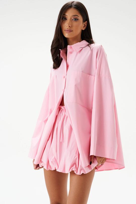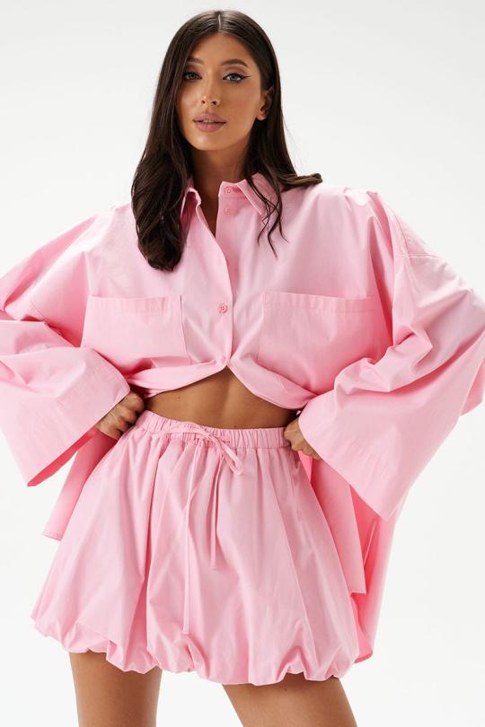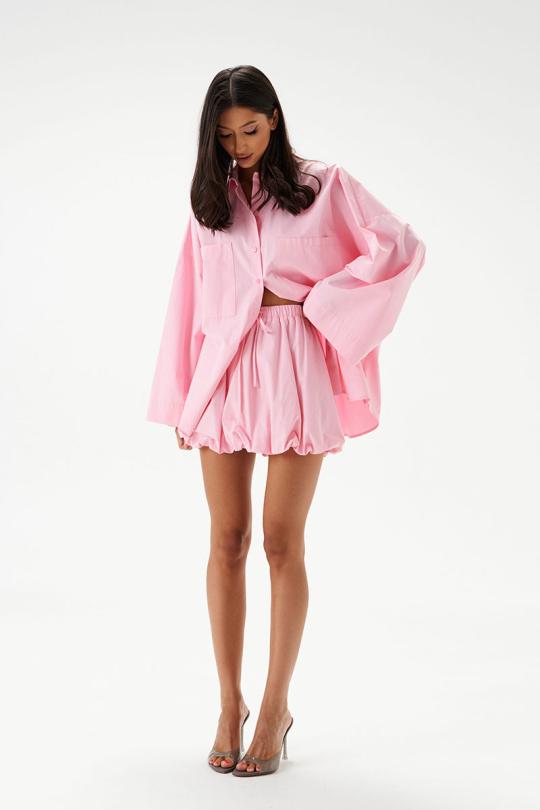 Юбка-мини. Выполнена из хлопковой ткани нежно-розового цвета. Характеристики: пояс на резинке с кулиской, подкладка, низ изделия на резинке.