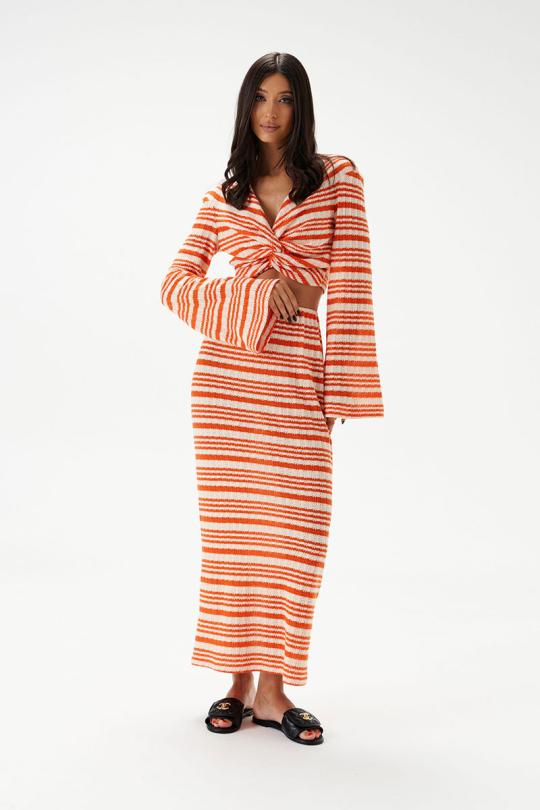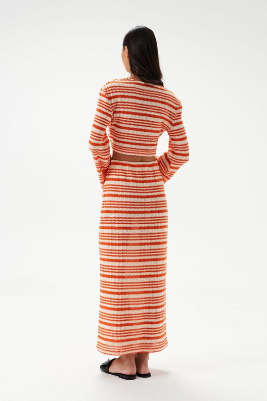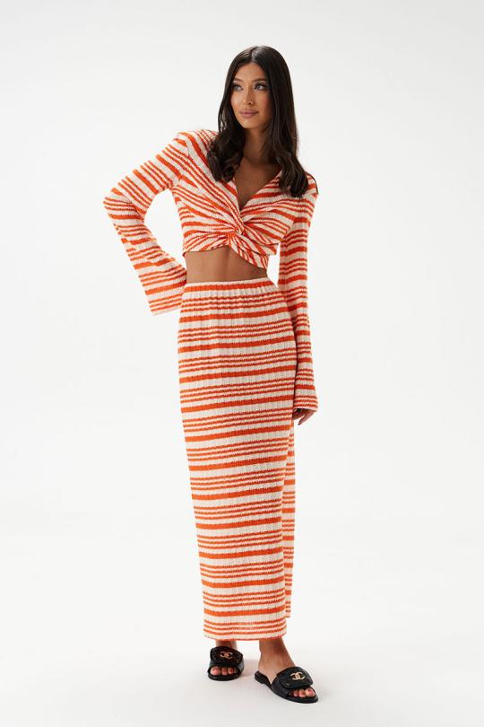 Юбка прямого кроя. Выполнена из мягкого вязаного трикотажа. Характеристики: прямой крой, пояс на резинке, эластичная, низ изделия не обработан.