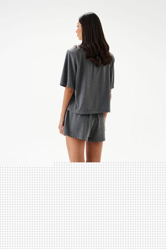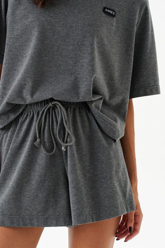 Шорты свободного кроя, выполнены из трикотажного полотна. Характеристики: прямой крой, пояс на резинке, завязка декоративная, в боковых швах карманы.
