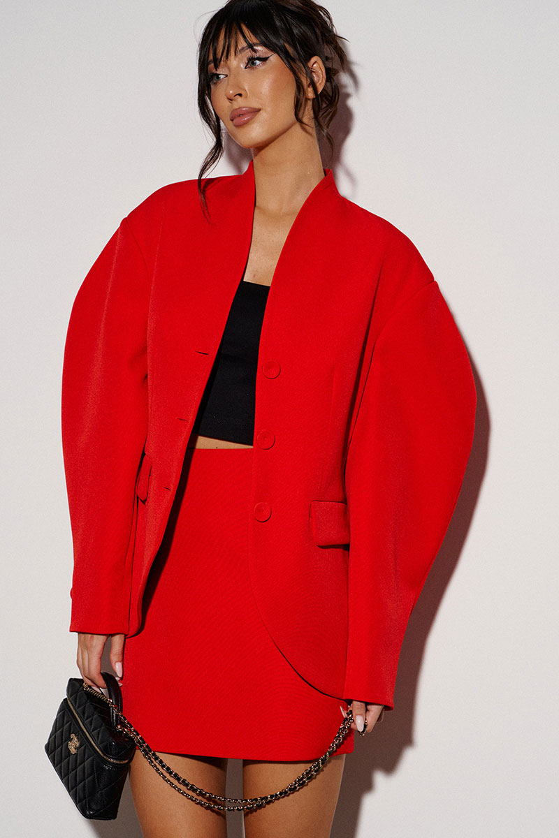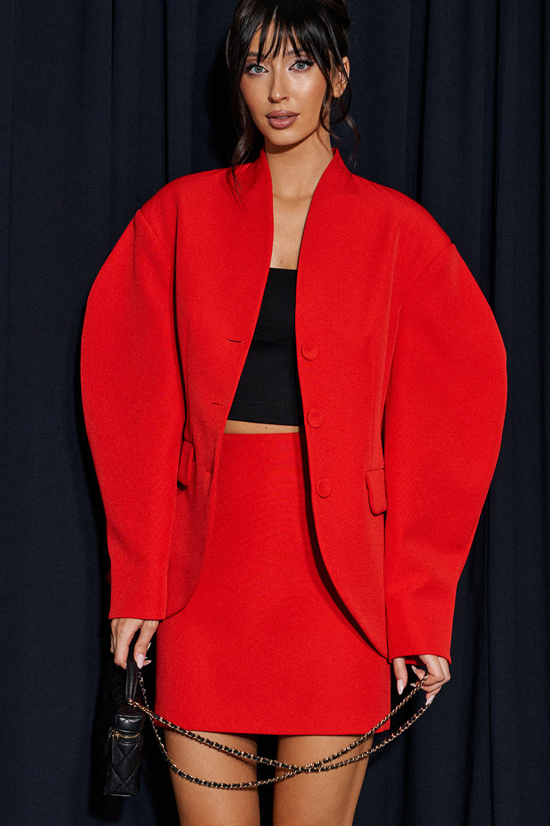 Юбка прямого кроя. Выполнена из костюмной ткани красного цвета. С подкладкой. Застежка - молния в среднем шве заднего полотна.
