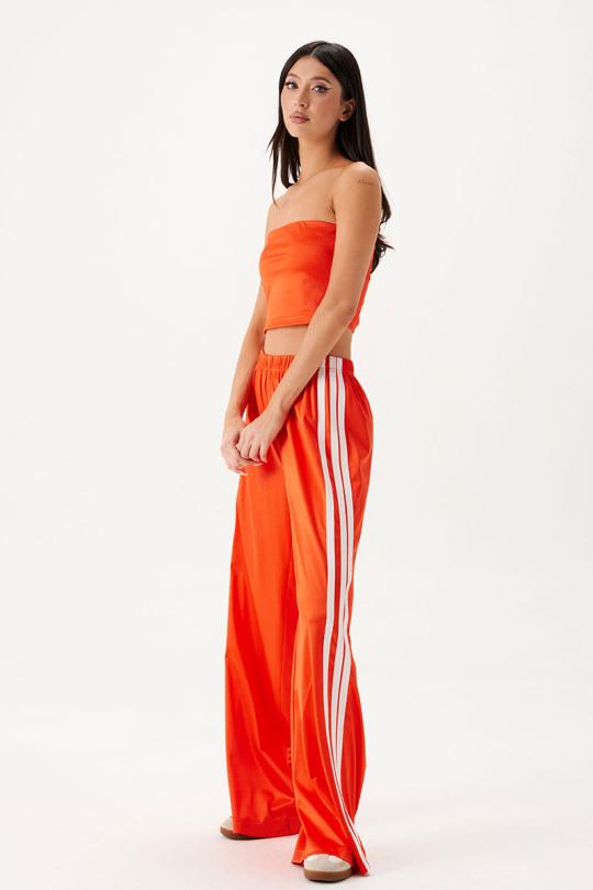 Укороченный топ прямого кроя выполнен из трикотажа ярко-оранжевого цвета.Характеристики: прямой крой, верх изделия по передней и задней части на резинке.