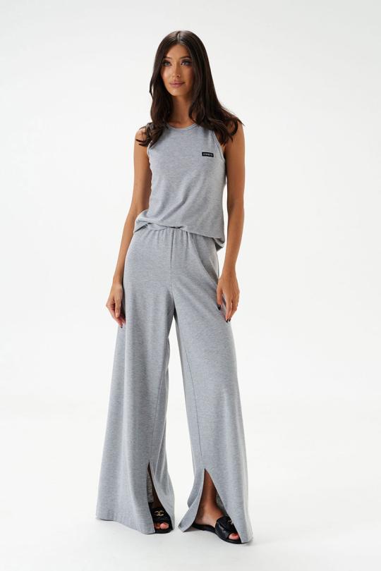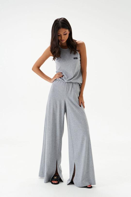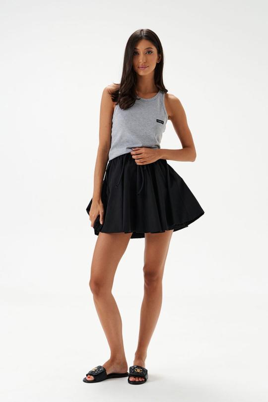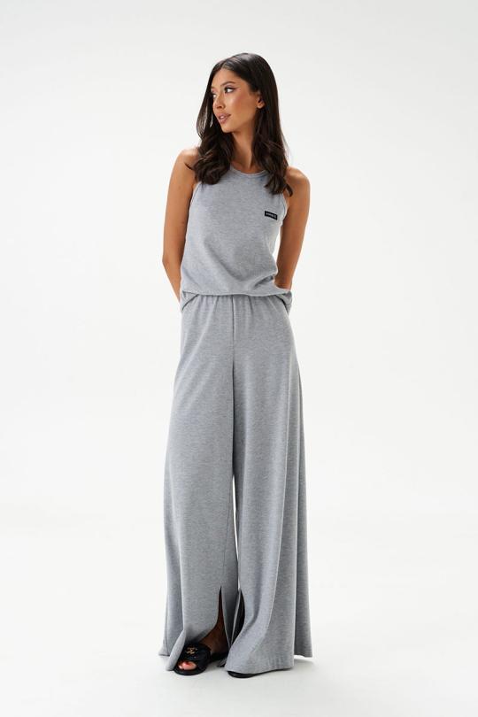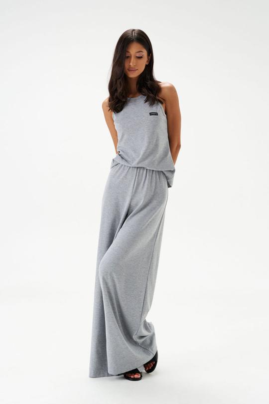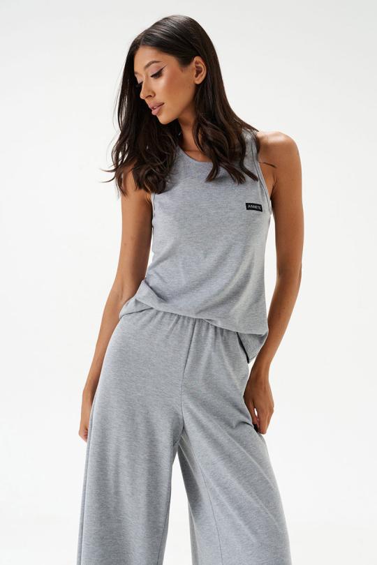 Топ прилегающего силуэта. Выполнен из трикотажного полотна серого цвета. Горловина круглая. Брендированная нашивка на линии груди.