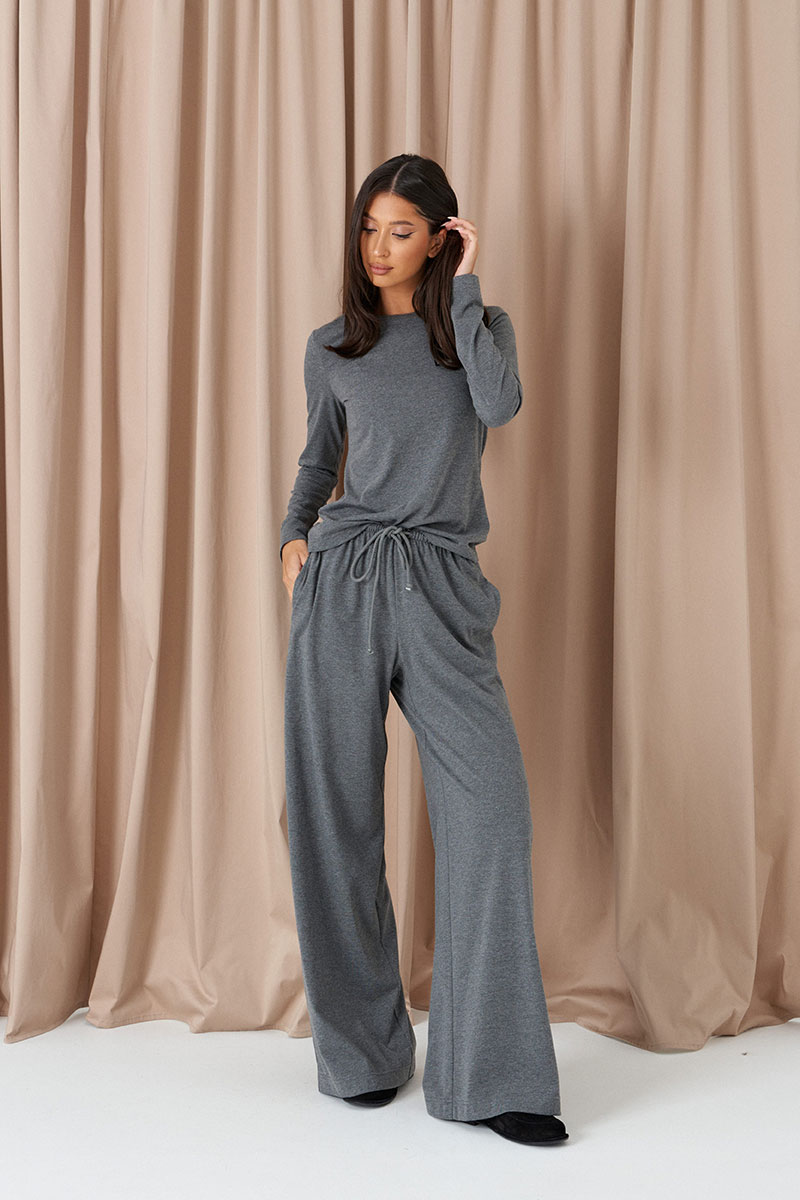 Джемпер выполнен из трикотажного полотна серого цвета. Характеристики: полуприлегающий силуэт, овальная горловина. Рукав втачной.