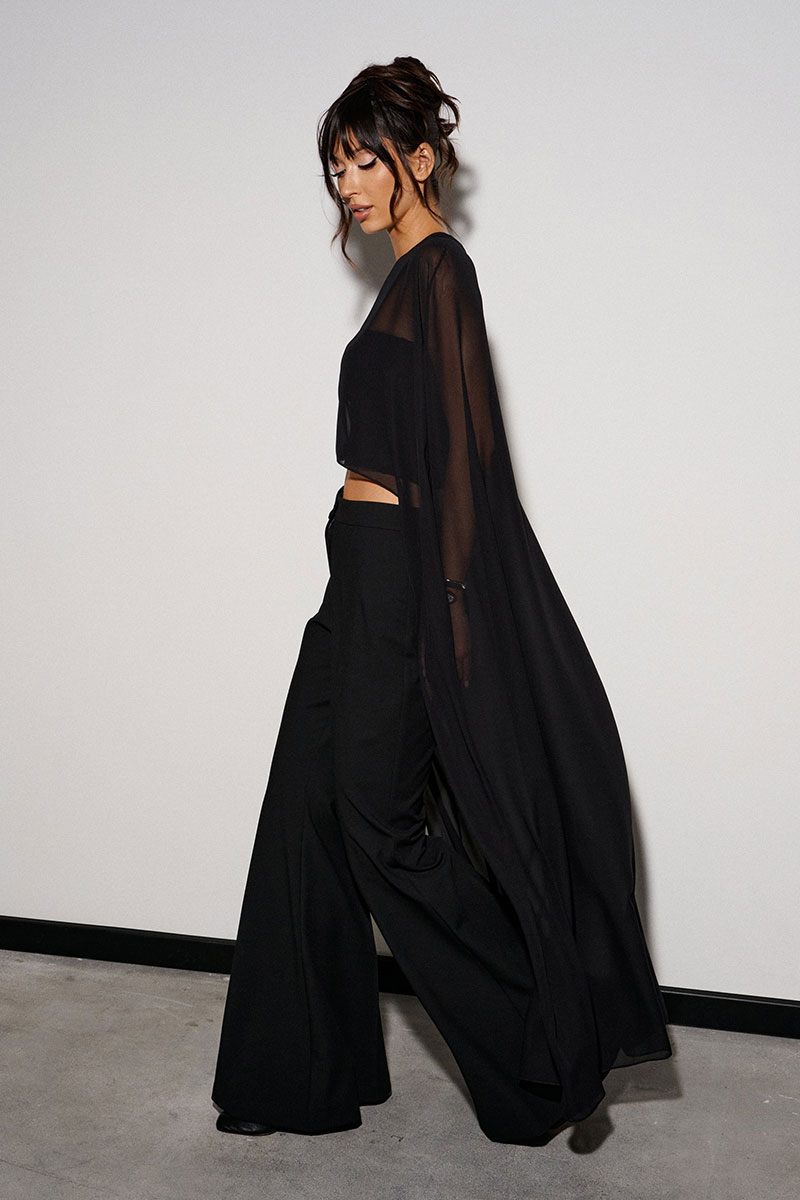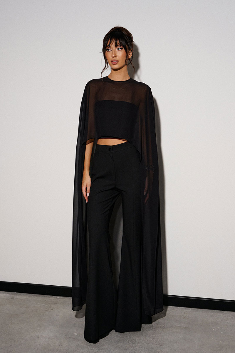 Блузон женский прямого силуэта, выполнен из легкого полотна черного цвета. Характеристики: горловина круглая, по спинке с разрезом, застегивающимся на петлю-пуговицу, укороченный спереди и длинный по спинке.