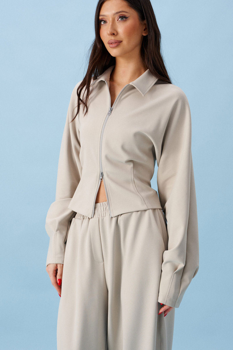 Джемпер женский, приталенного силуэта. Выполнен из трикотажного полотна. Характеристика:вырез горловины круглый с отложным воротником.Рукава длинные с вытачками на заужение по низу, цельнокраеные с деталями полочки и спинки.По полочке талиевые вытачки с отделочными строчками, по спинке-средний шов с талиевыми вытачками.Застежка центральная на молнию.