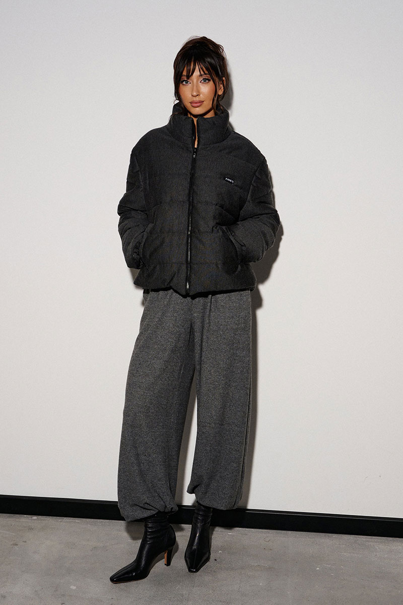 Куртка укороченная, утепленная, выполнена из трикотажного стегонного полотна. Характеристика: прямой крой, горловина стойка, брендированная подкладка на утеплении. Застежка центральная на молнии. Рукав спущен. По переду изделия функциональные карманы.