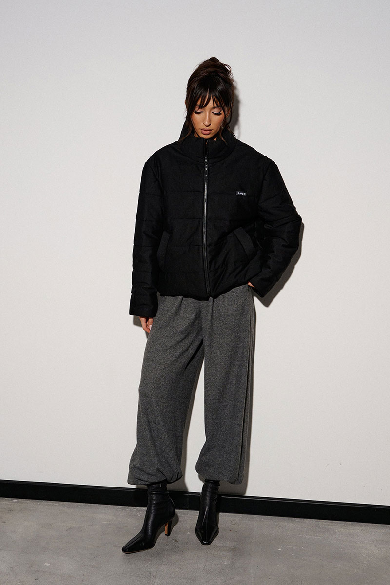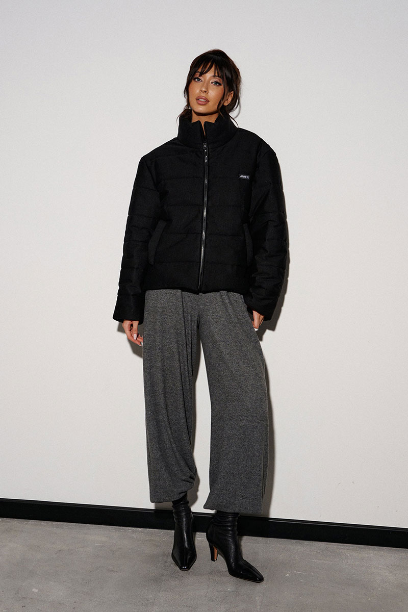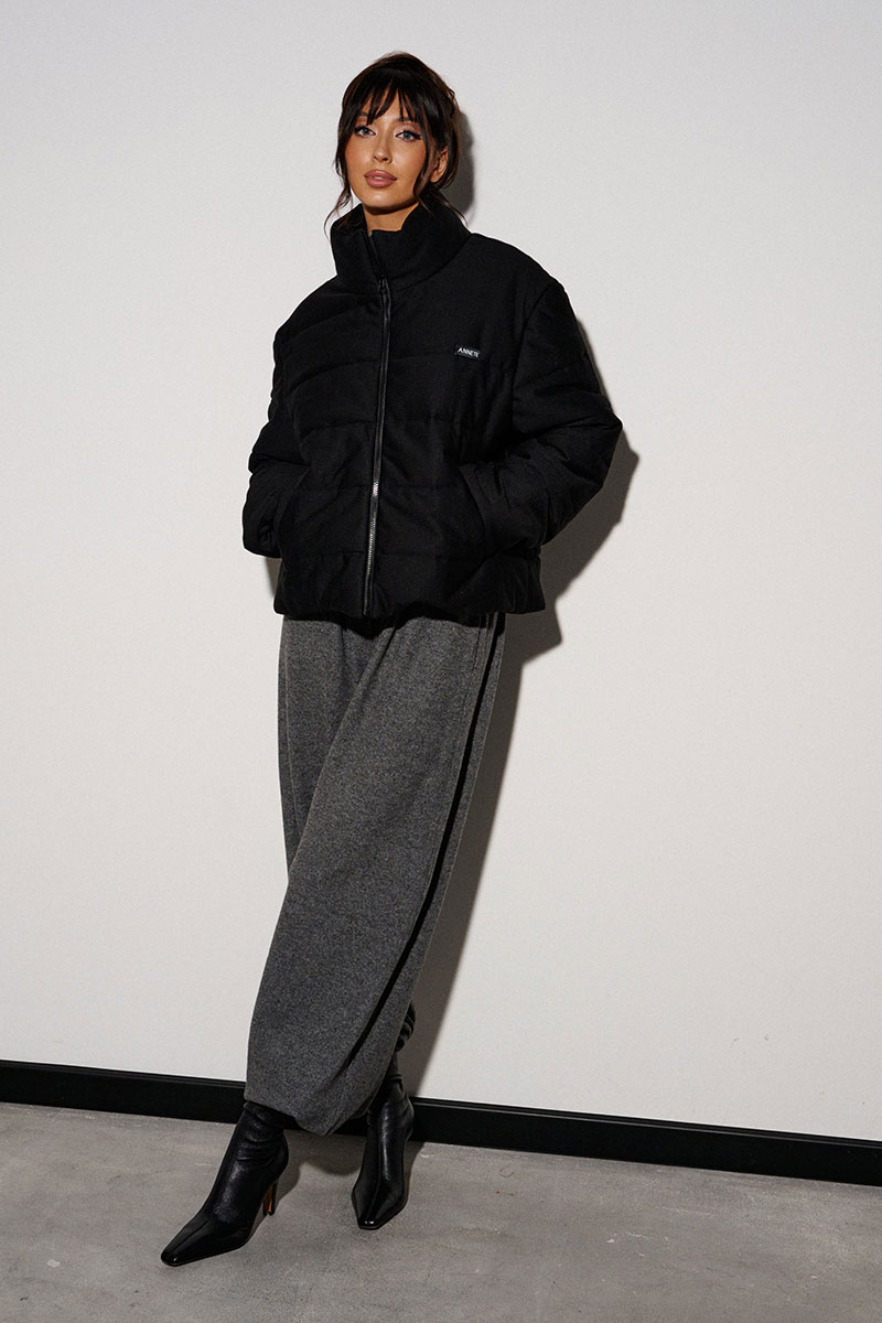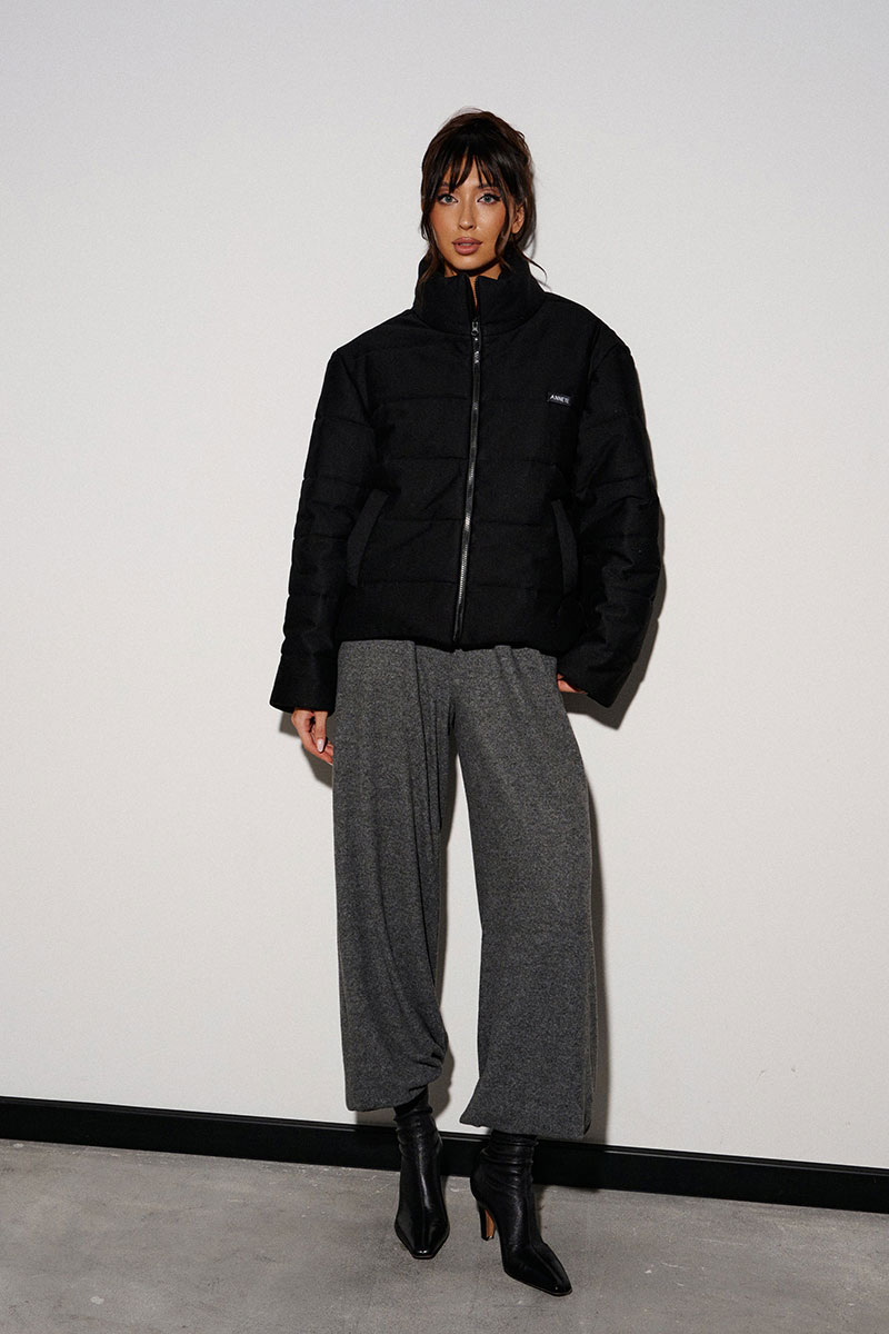 Куртка укороченная, утепленная, выполнена из трикотажного стегонного полотна. Характеристика: прямой крой, горловина стойка, брендированная подкладка на утеплении. Застежка центральная на молнии. Рукав спущен. По переду изделия функциональные карманы.