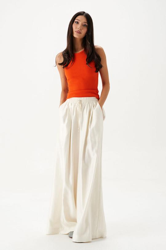 Топ прилегающего силуэта выполнен из фактурного полотна. Характеристики: полуприлегающий силуэт, плавный вырез горловины.