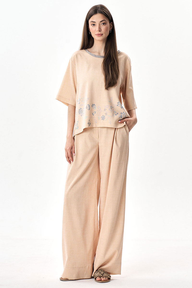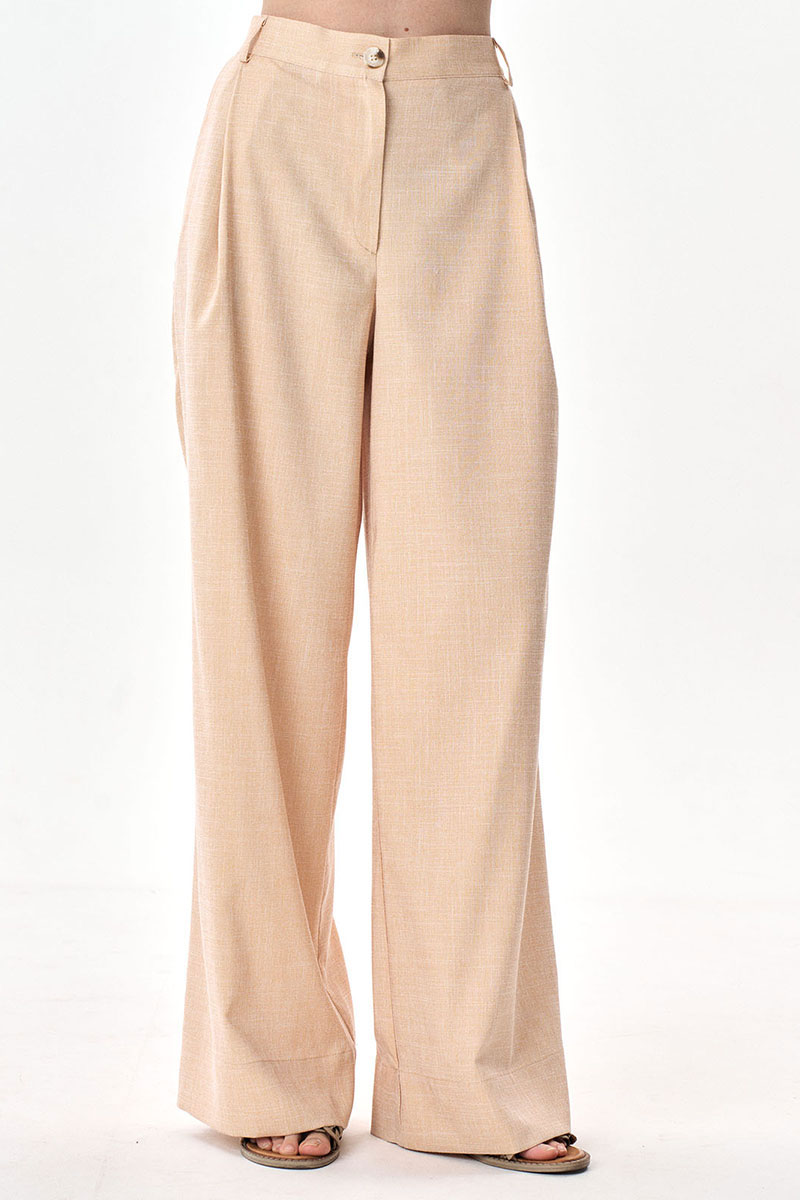 Брюки-палаццо свободного силуэта с карманами. Пояс притачной, застежка центральная на тесьму-молнию. Возможно отличие фотографии по оттенку, связанное с разной цветопередачей