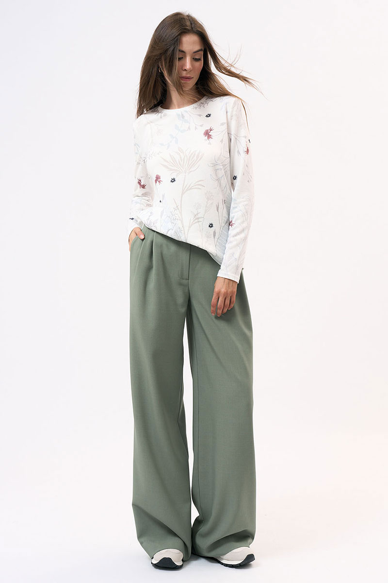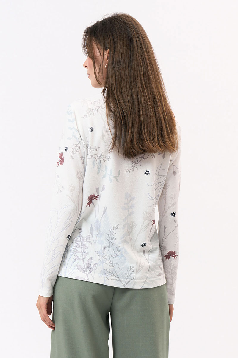 Джемпер женский приталенного силуэта изготовлен из мягкого трикотажного полотна. Горловина круглой формы, рукав длинный, втачной.