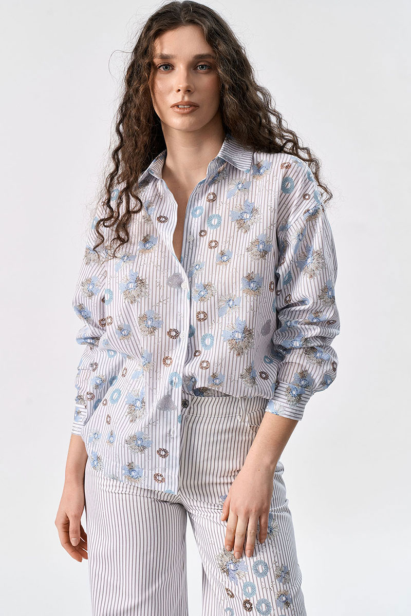 Блузка из хлопка - это базовая вещь на протяжении всего года. Данная модель кочует из сезона в сезон и никогда не надоедает. В нашей новой коллекция белая блуза декорирована