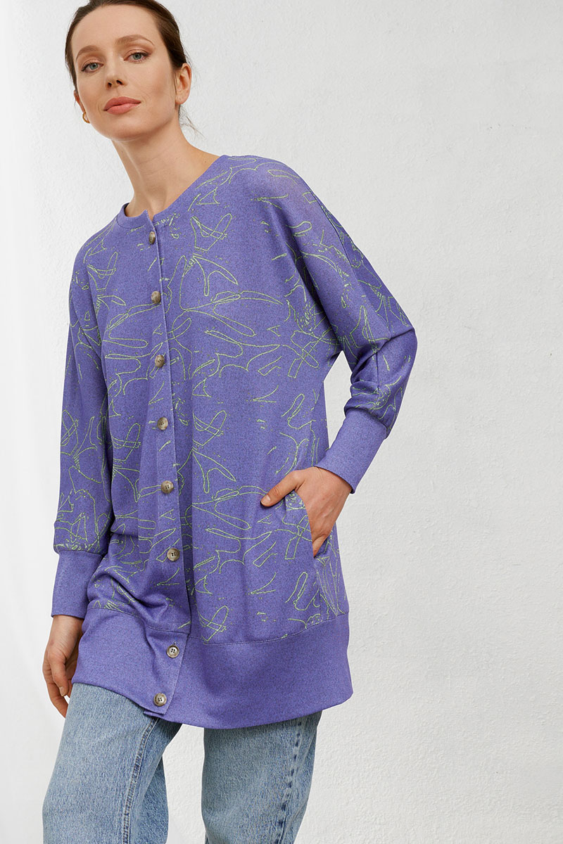 прямого силуэта с длинным рукавом на притачной манжете. По низу кардигана обработана отделочная планка. Горловина округлой формы. Застежка центральная на петли и пуговицы. Возможно