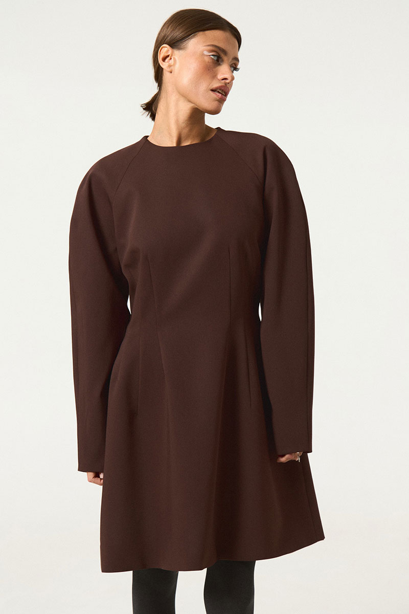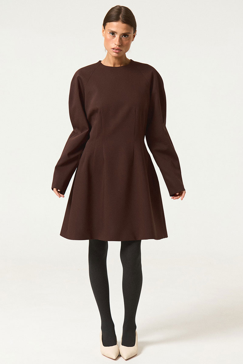 Платье приталенного силуэта с объемными рукавом реглан. Платье в длине мини. Платье с вытачками.