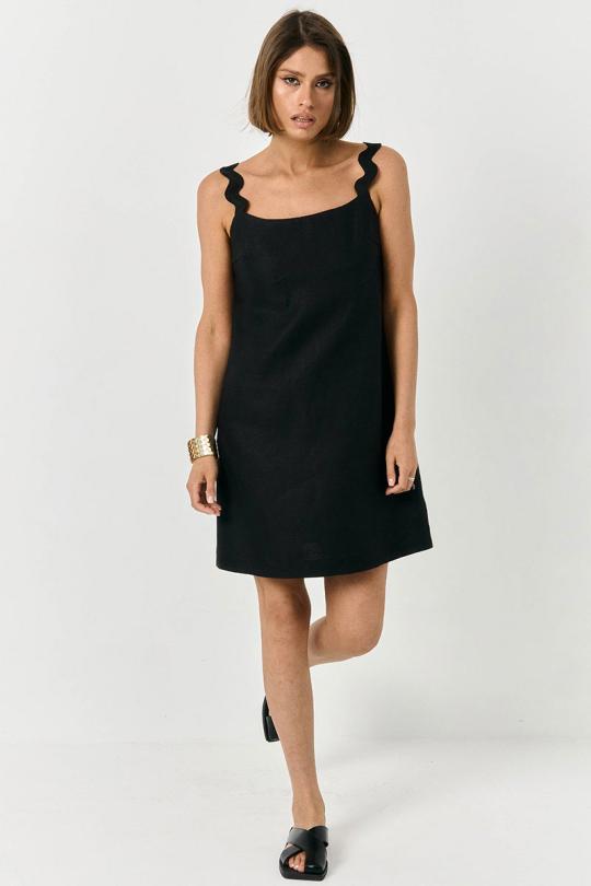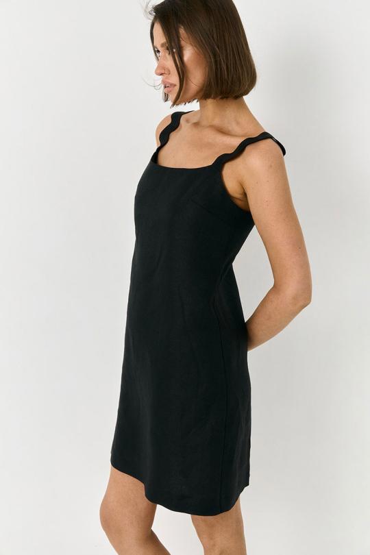 Плятье прямого свободного силуэта, с декоративными брителями, выполнено из льна. Бретели стабильные.
