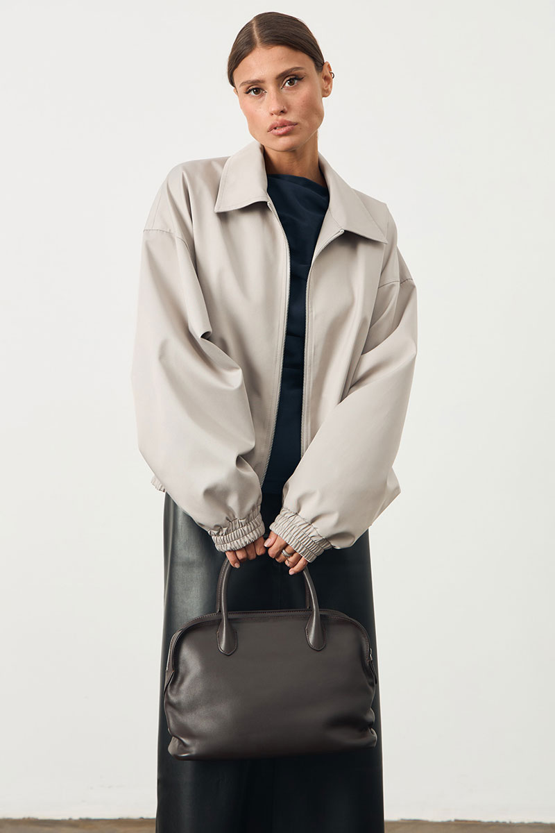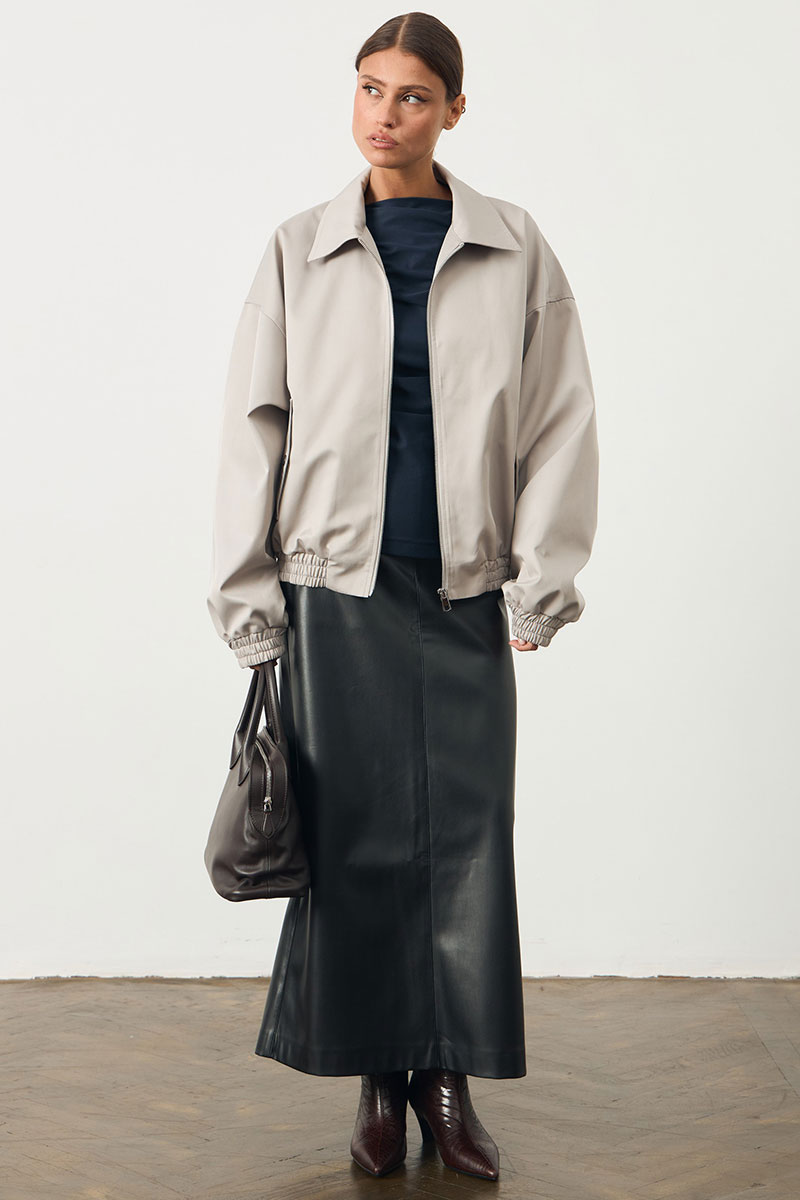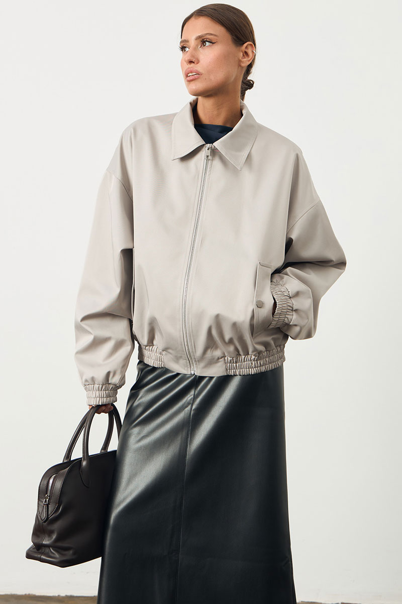 Куртка прямого силуэта. По переду куртки прорезные карманы с клапанами. На спинке кокетка. Воротник рубашечного типа. Рукав широкий с манжетой на резинке. Низ изделия обработан притачным поясом на резинке. Застежка-молнния.