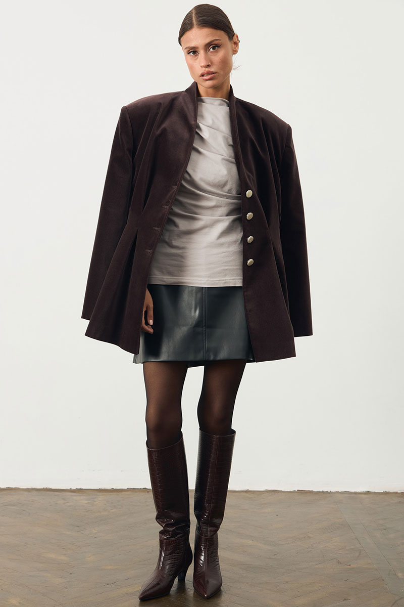 Юбка из экокожи А-образного силуэта, с потайной молнией.