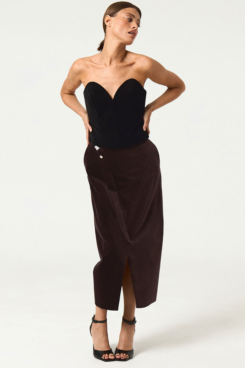 Топ, выполнен в корсетном стиле из хлопковой ткани с перламутровым напылением. По спинке застежка на разъемную металлическую молнию.