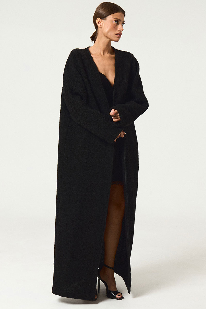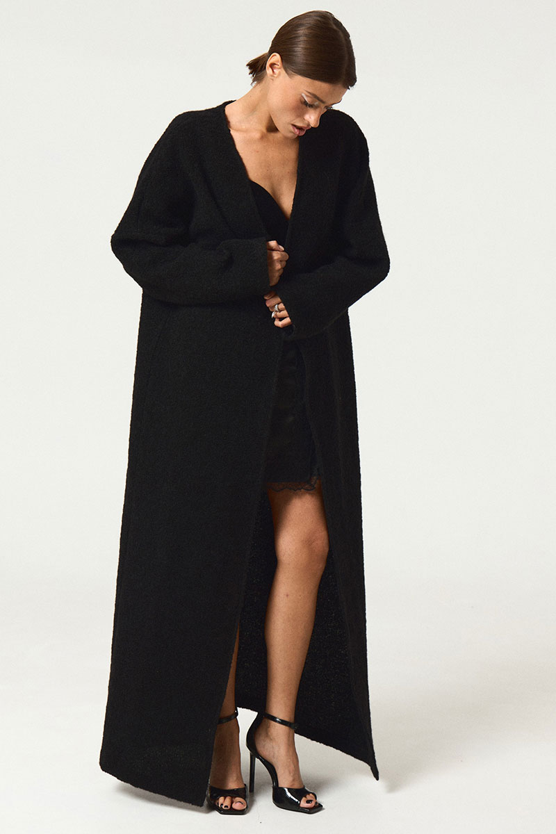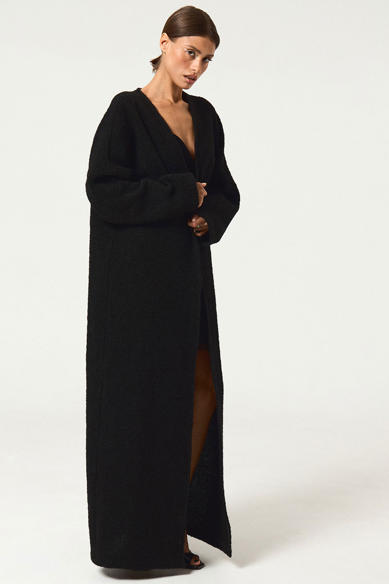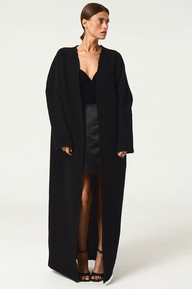 Кардиган прямого силуэта. Застежка на одну пуговицу. Длина макси.