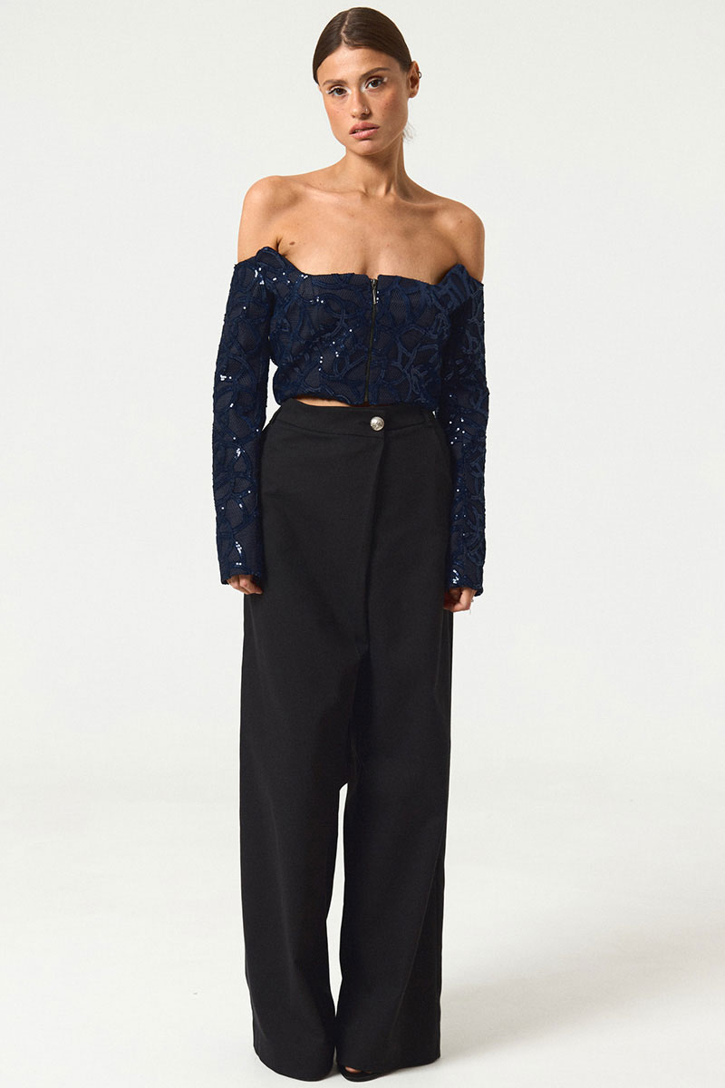 Топ прилегающего силуэта, с фигурным вырезом по переду и спинке. Рукав длинный. По переду изделия застежка на молнию.