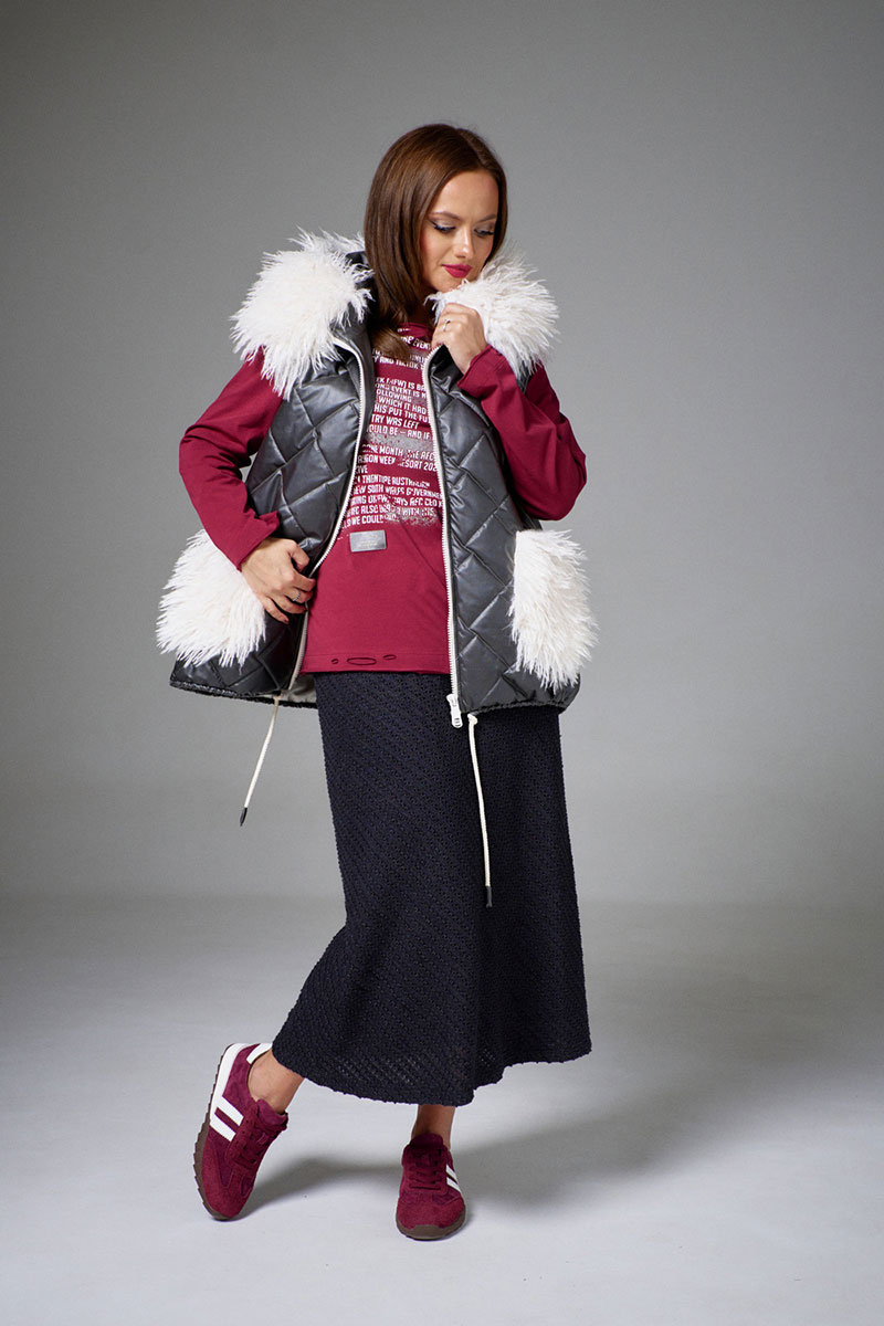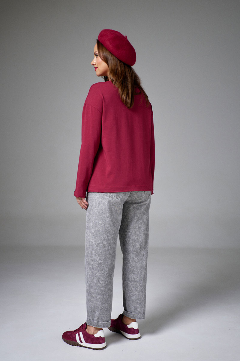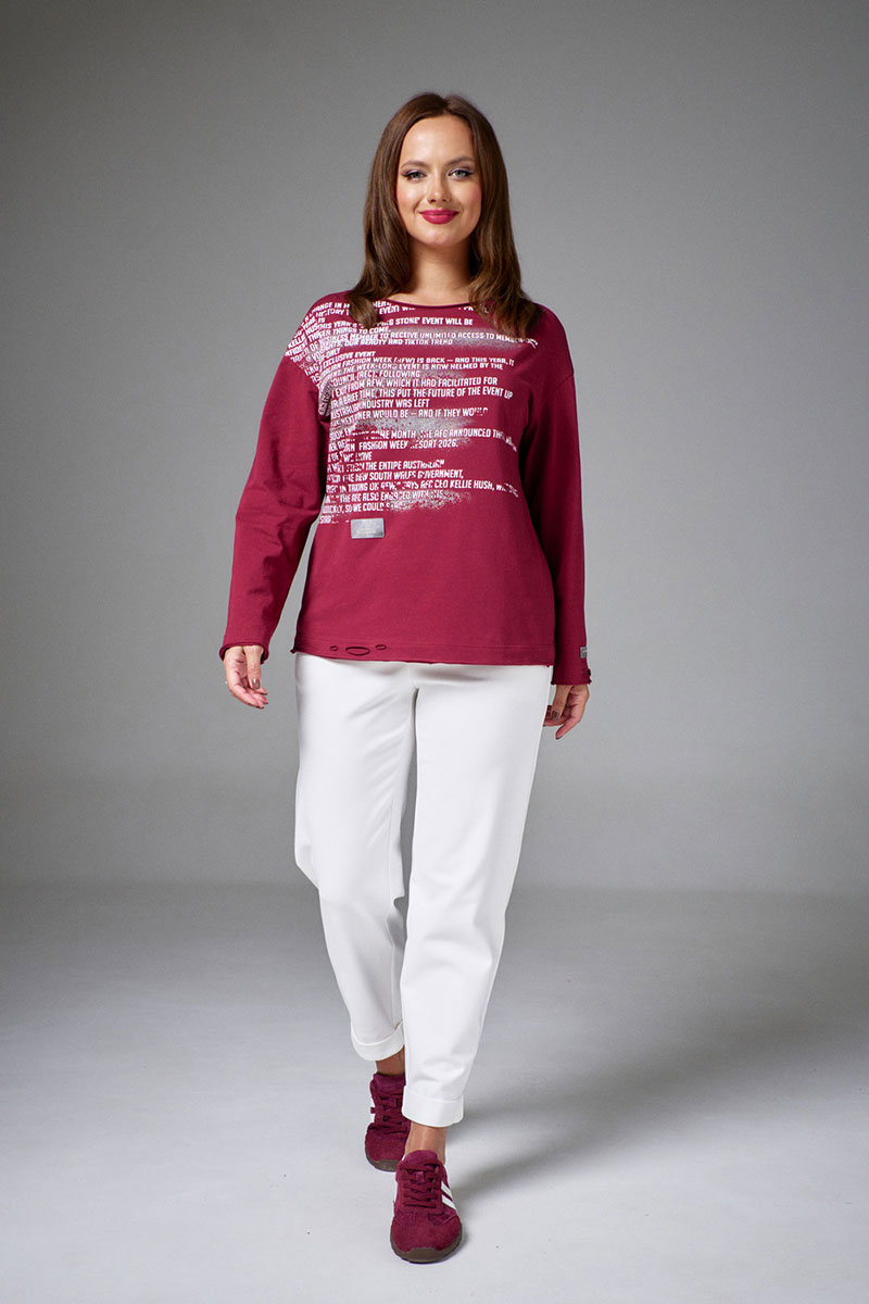Лонгслив из хлопковой кулирки, свободного силуэта, с длинным рукавом и круглой горловиной. На переде авторский принт. По низу изделия и рукава декоративные прорези.