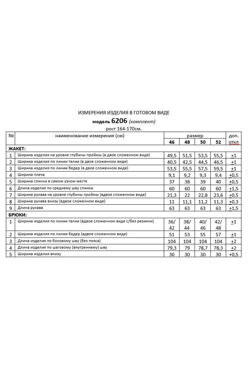 Длина рукава (жакет) – 63 см