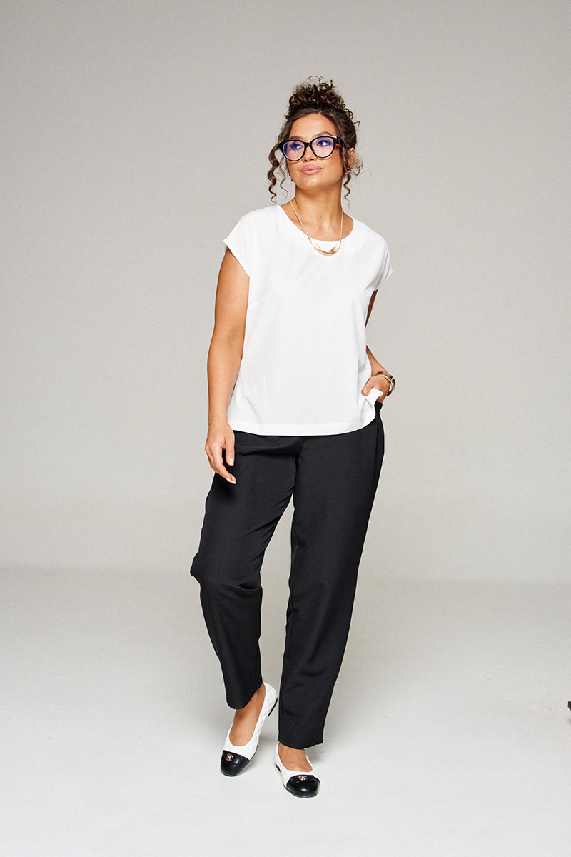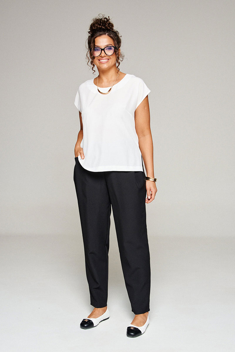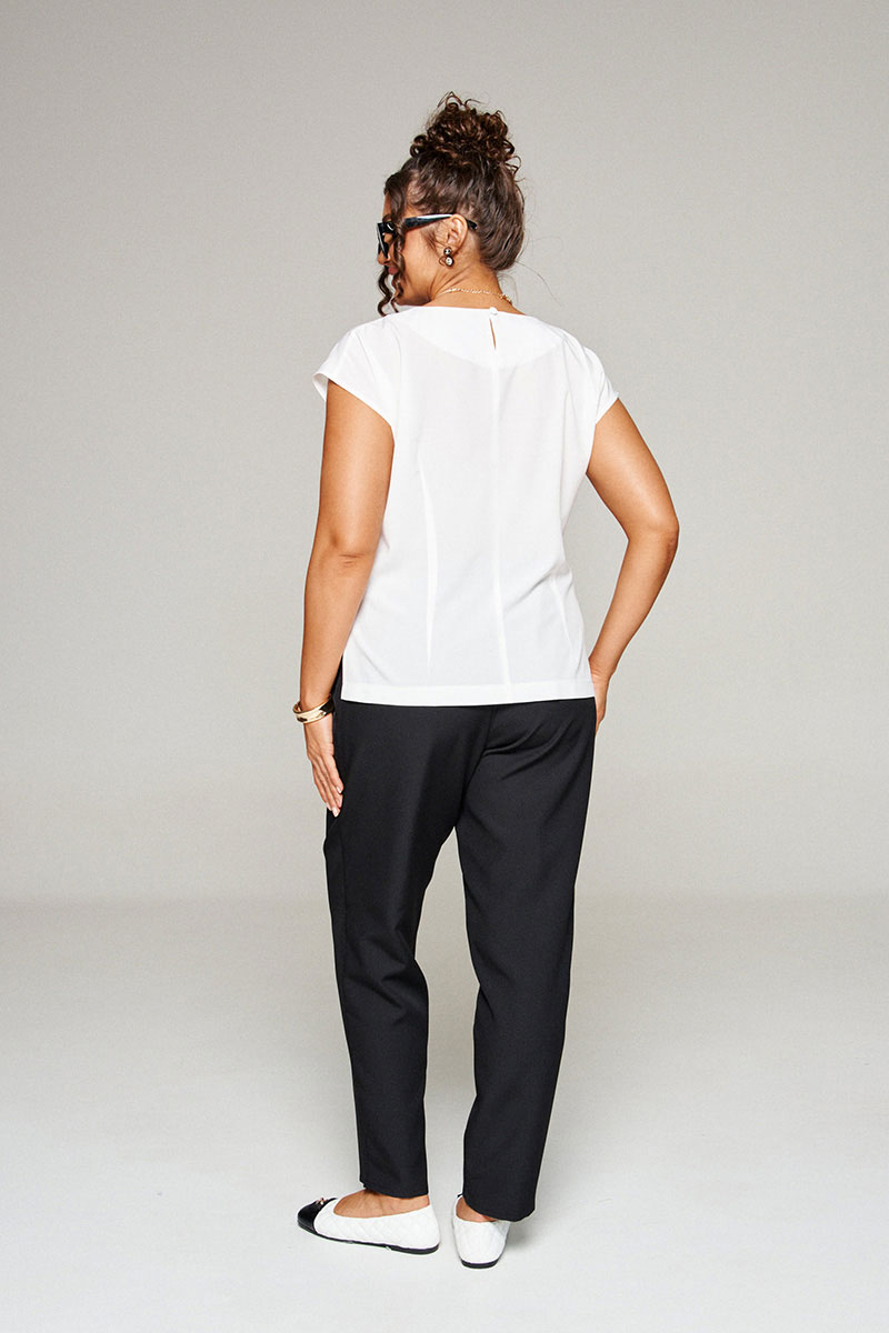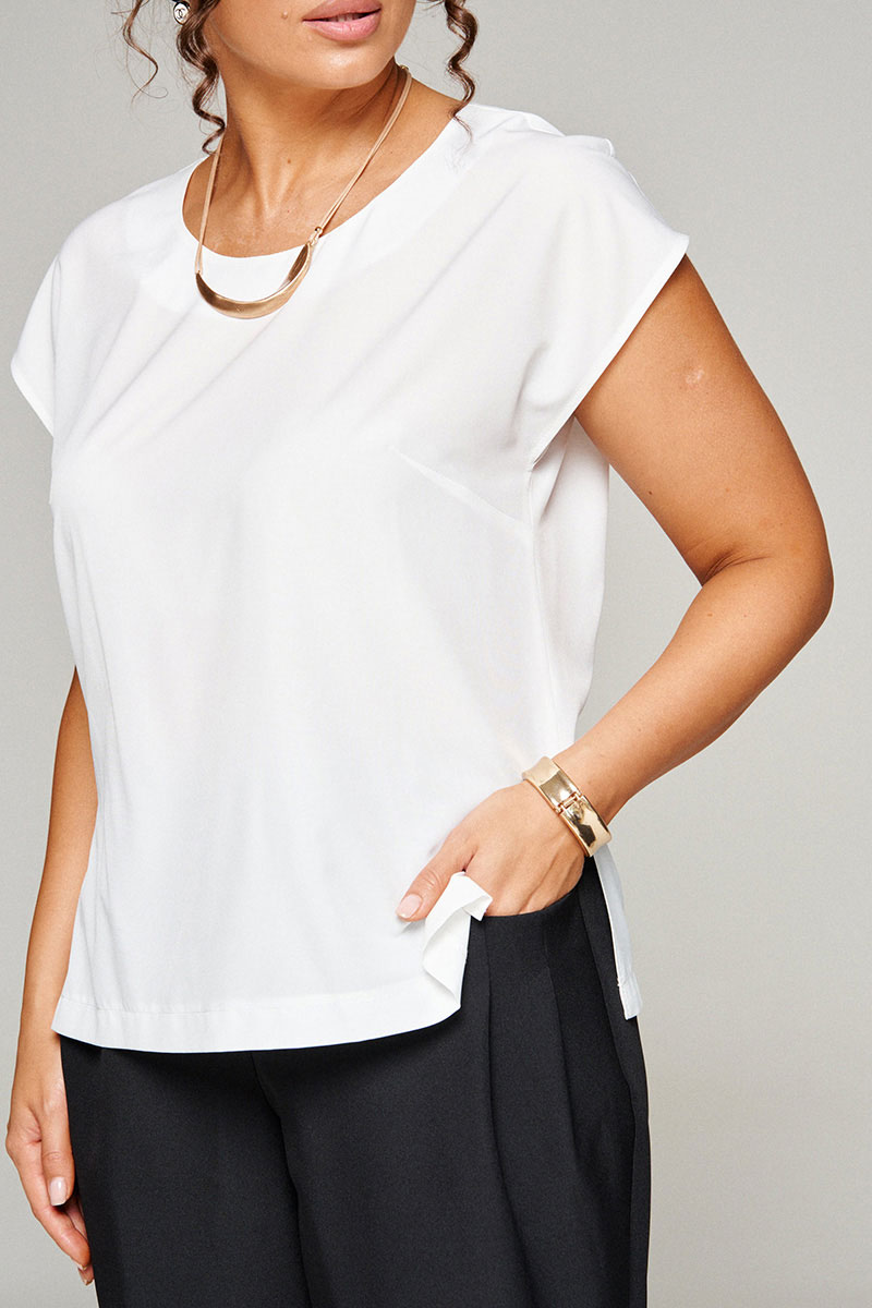 Блузка полуприлегающего силуэта, выполнена из смесового вискозного полотна.