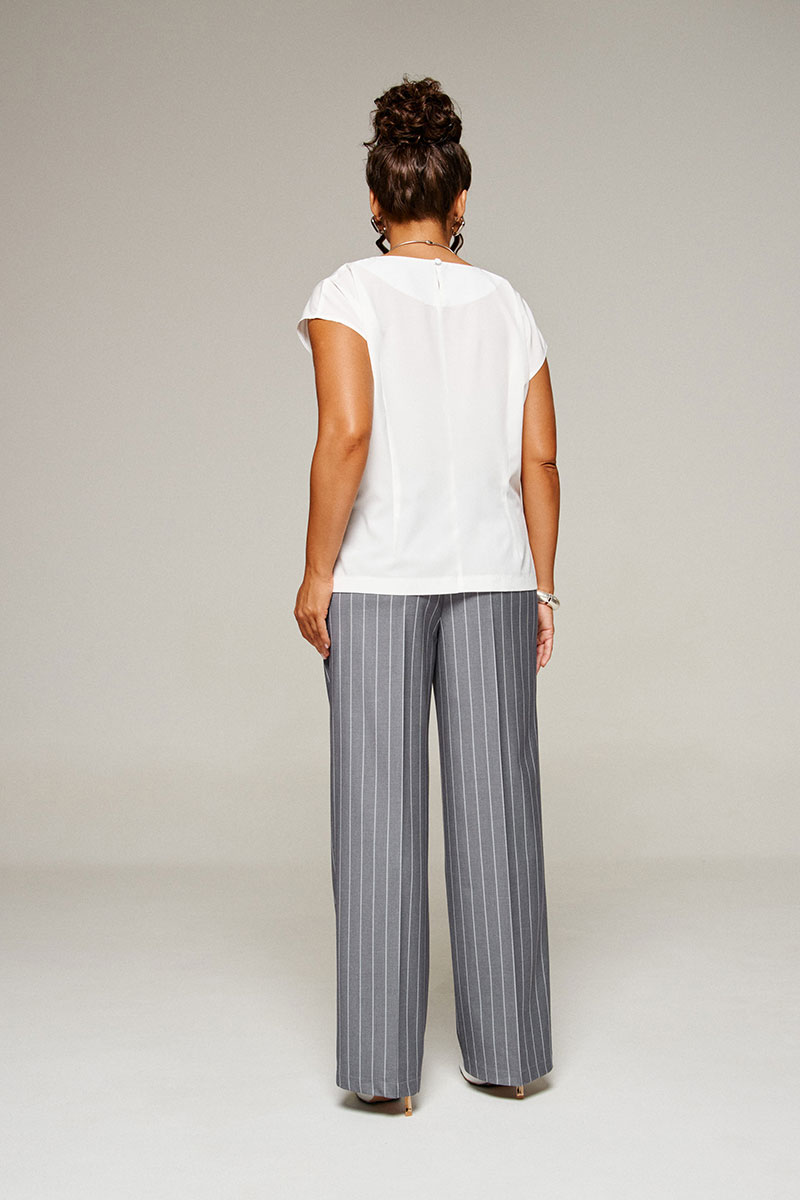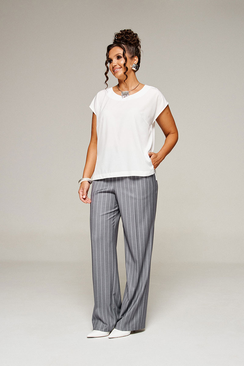 Блузка полуприлегающего силуэта. Горловина округлой формы. В боковых швах снизу разрезы.
