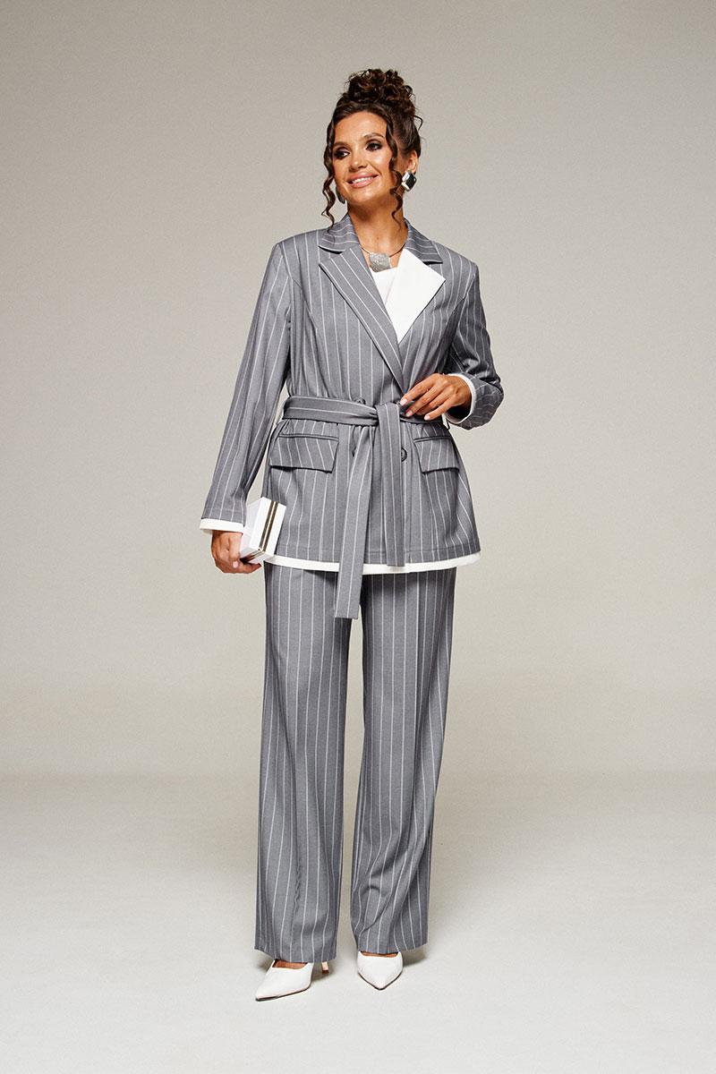 Деловой комплект 3-ка, состоящий из трех предметов: жакета, брюк и блузки.