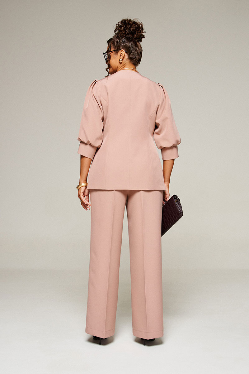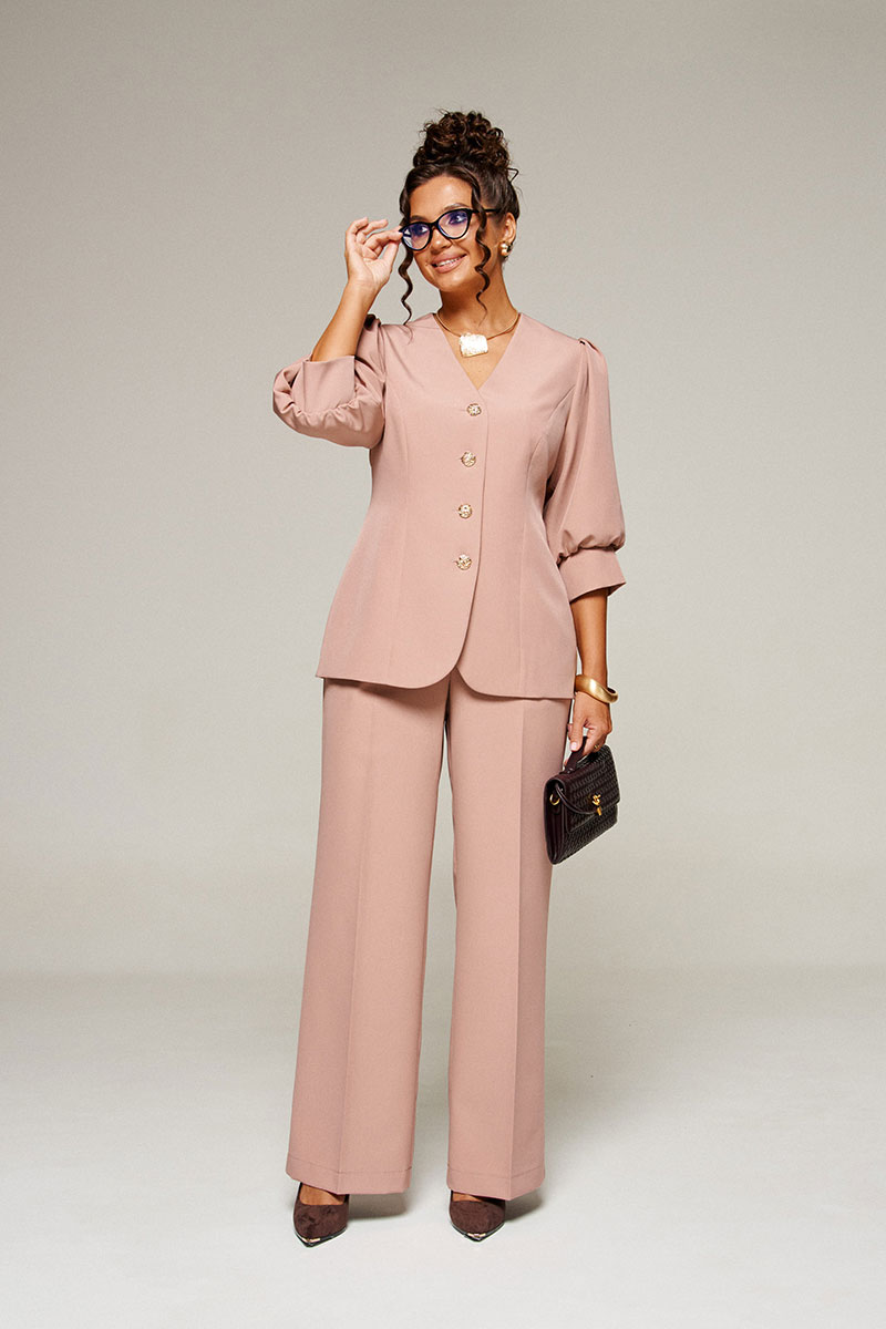 Костюм женский 2-ух предметный: жакет и брюки в деловом стиле. Выполнен из костюмного полотна с нежной фактурой в мягких актуальных оттенках.