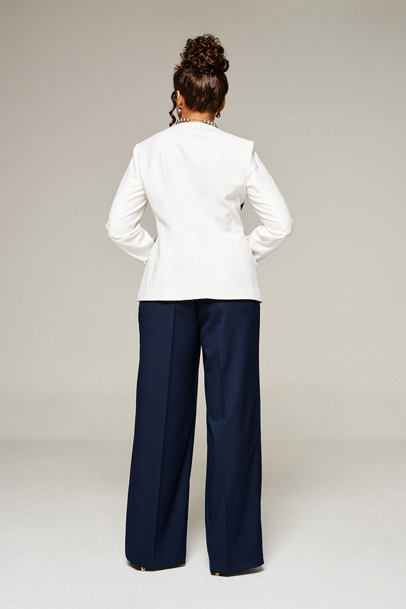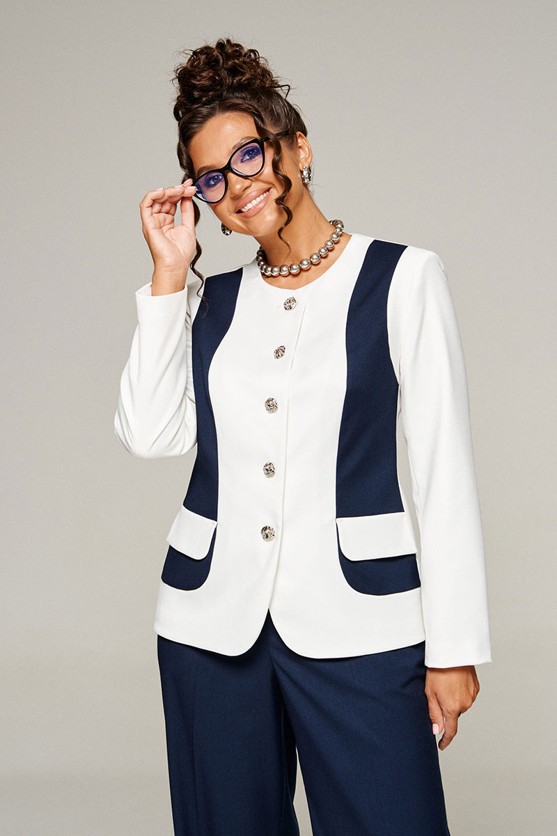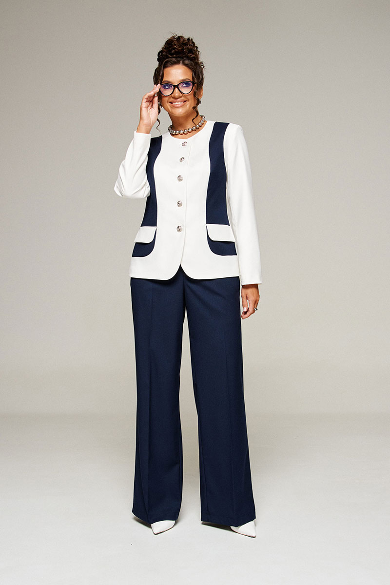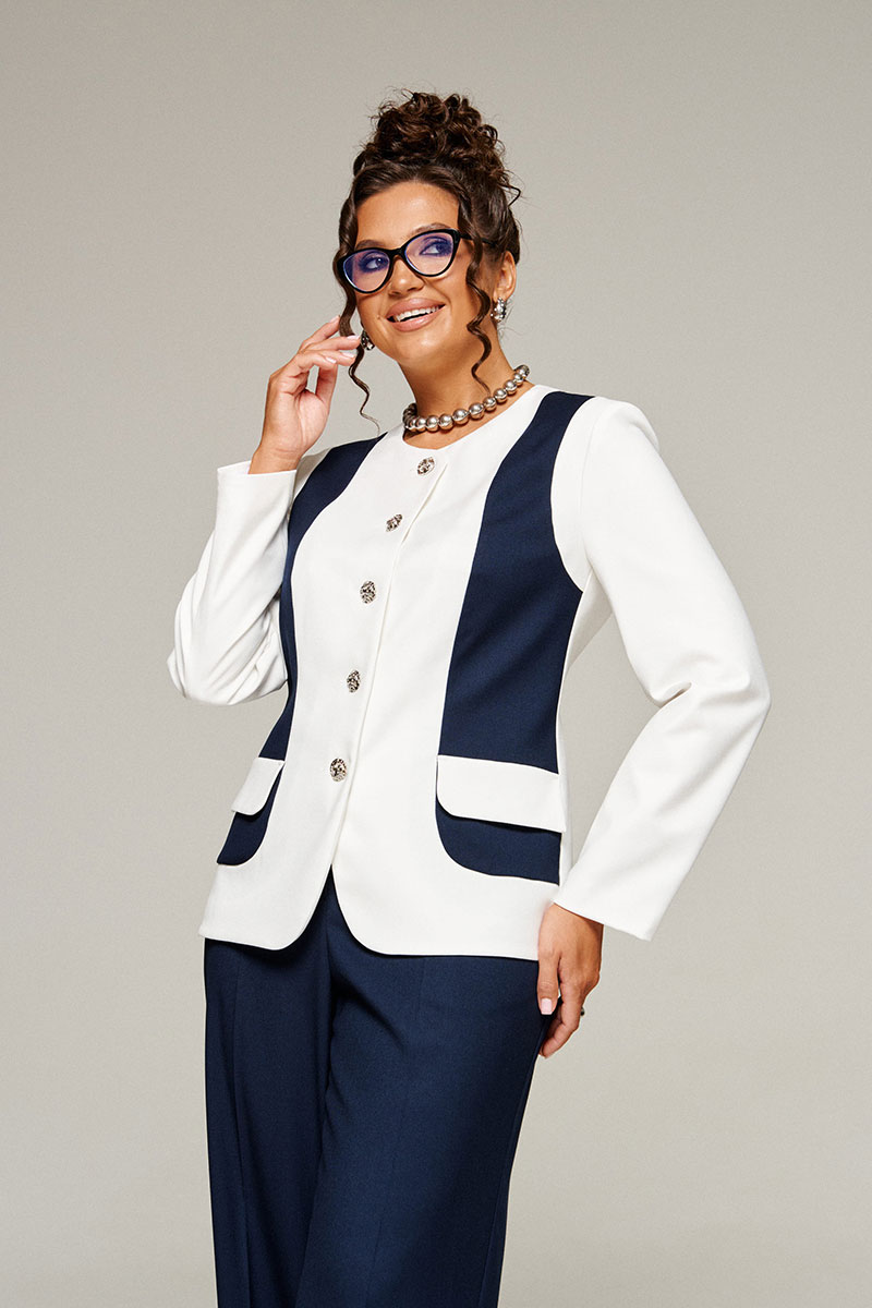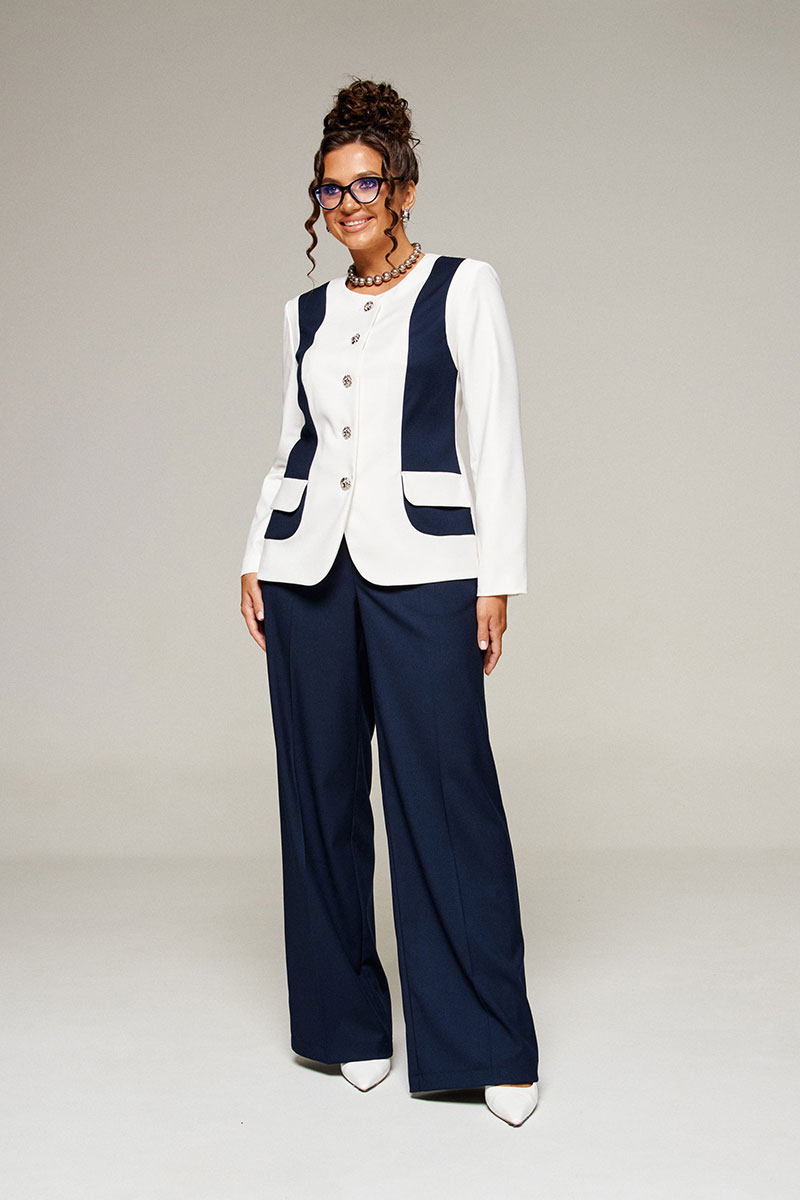 Костюм женский 2-ух предметный: жакет и брюки в деловом стиле. Выполнен из костюмного полотна с нежной фактурой в контрастном сочетании актуальных оттенков.