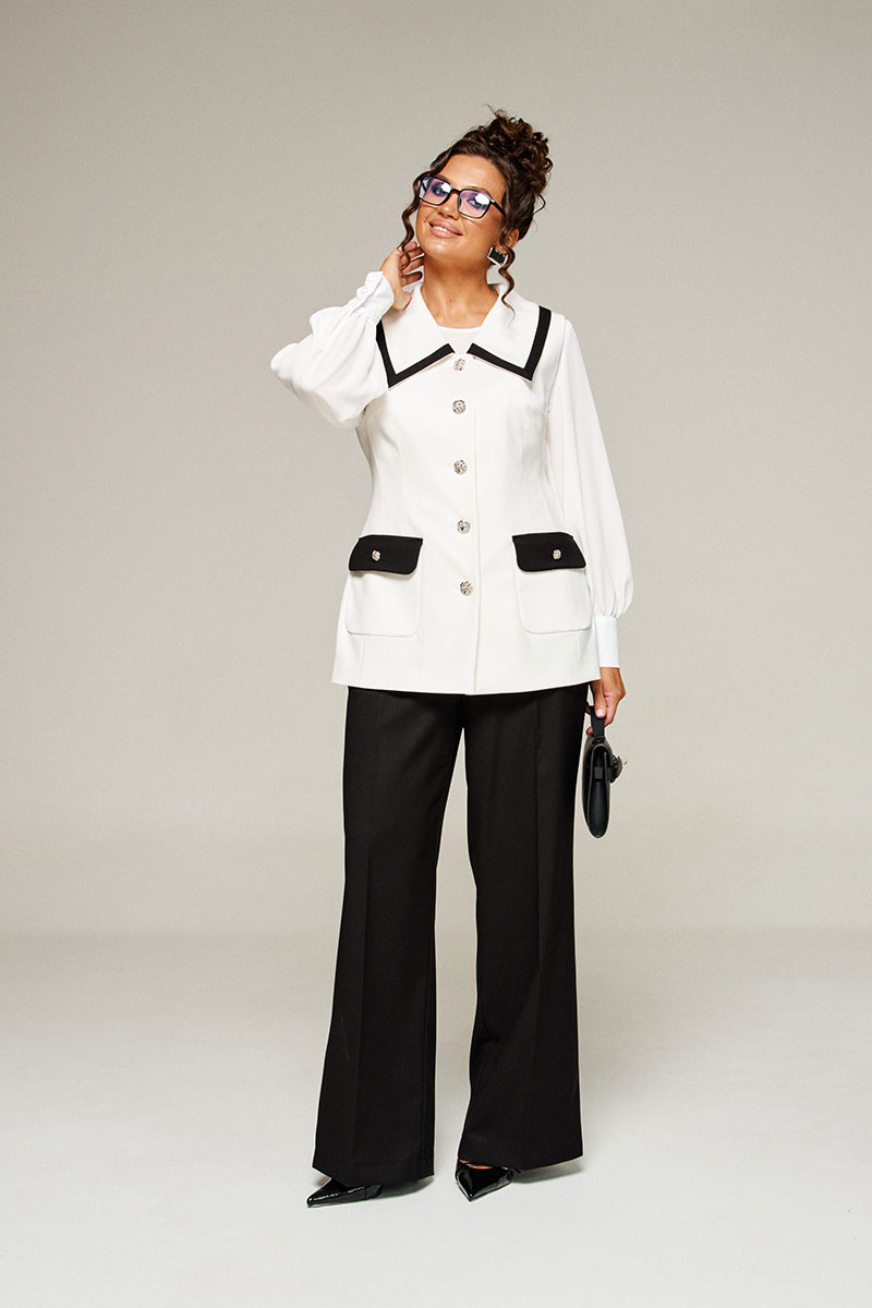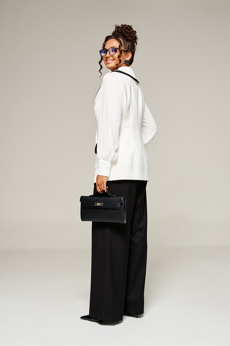 - Состав: жилет; брюки: вискоза 67%; ПЭ 31%; спандекс 2%; блуза: ПЭ 75%; вискоза 25%