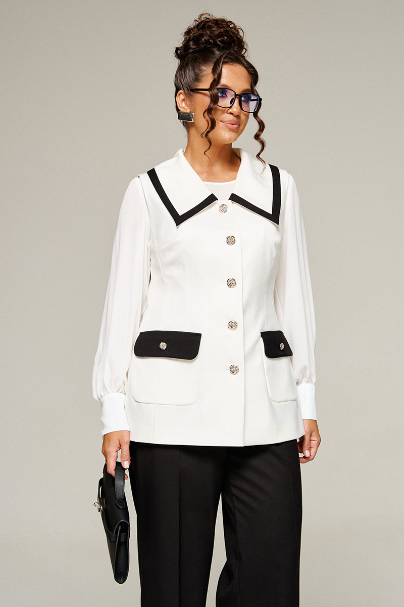 Передняя часть блузы цельнокроеная с вытачками от бокового шва.