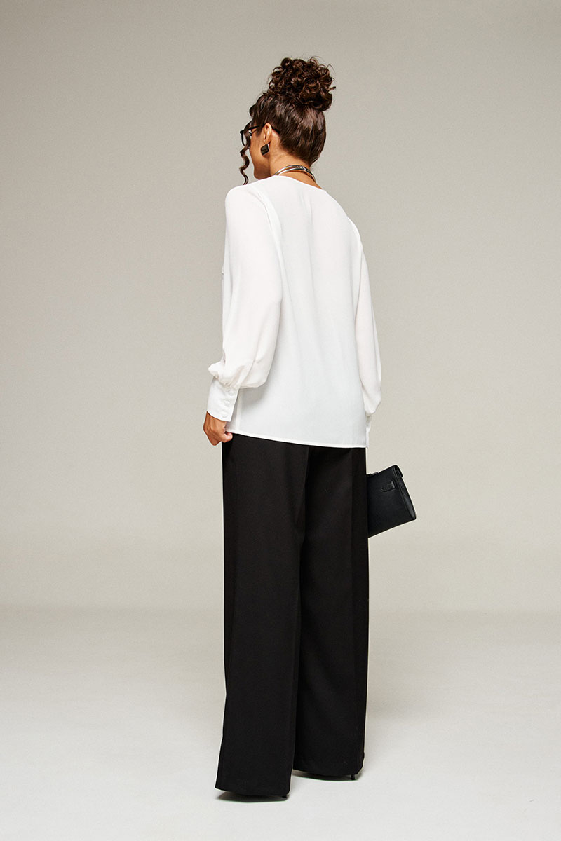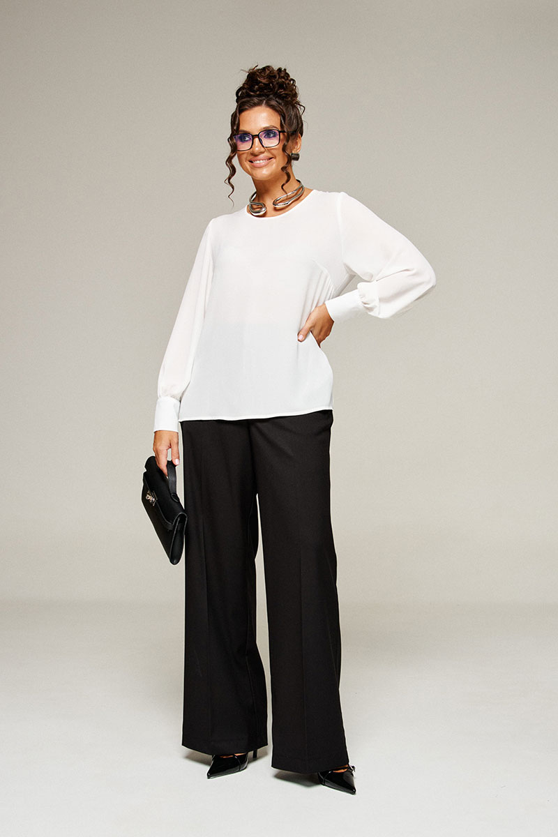 Блузка прямого, свободного силуэта, выполнена из шифонового полотна.
