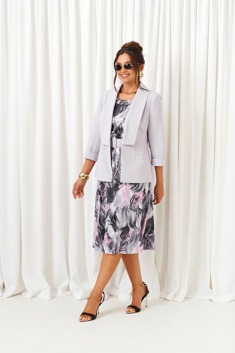 - Состав: жакет: вискоза 60%; ПЭ 37%; спандекс 3%; платье: ПЭ 75%; вискоза 25%