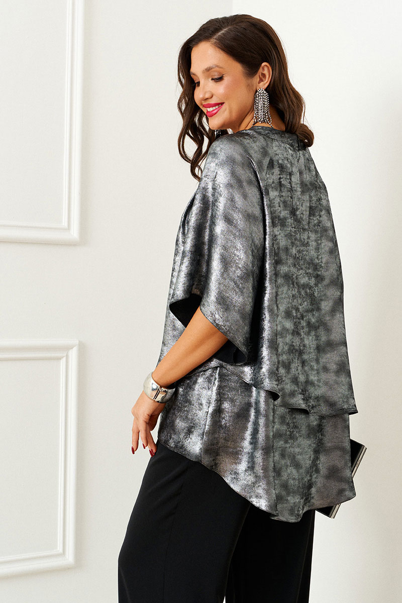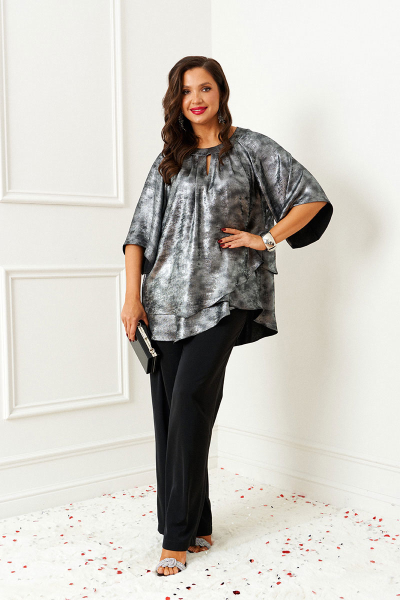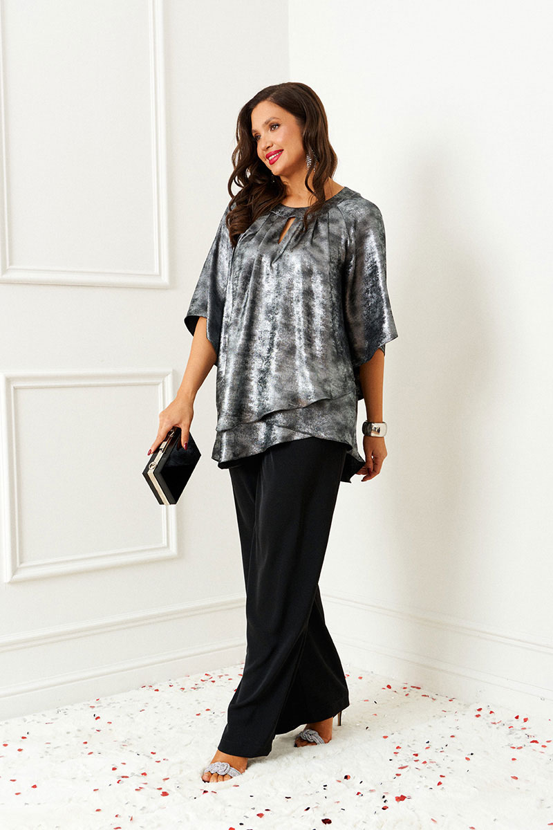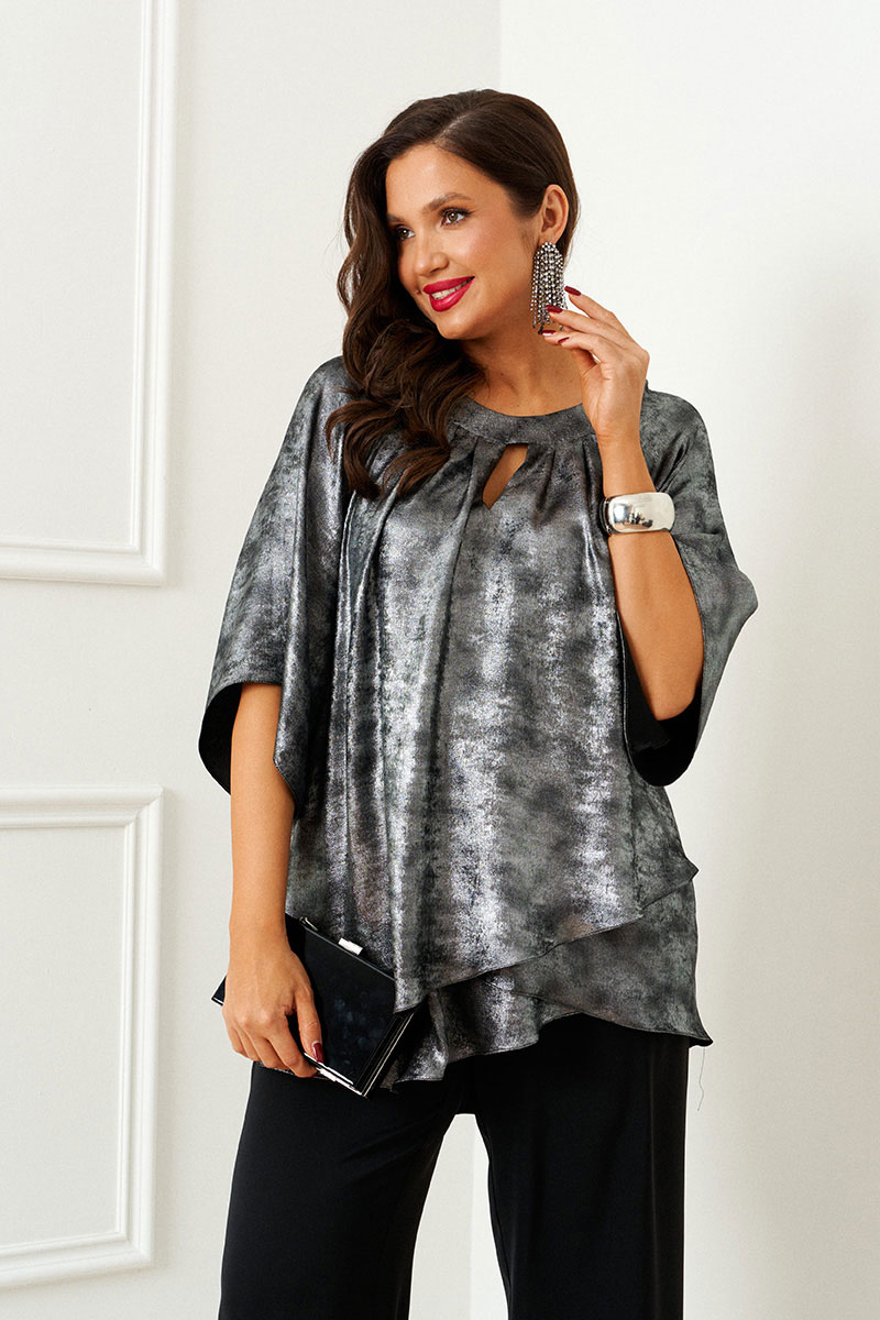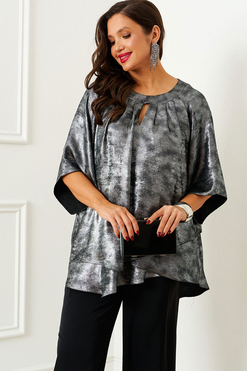 Блуза свободного кроя из легкой струящейся ткани, силуэт блузы отлично драпируется на фигуре.