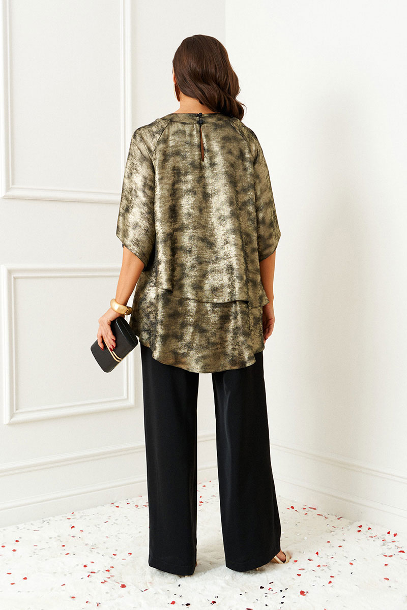 Блуза свободного кроя из легкой струящейся ткани, силуэт блузы отлично драпируется на фигуре.