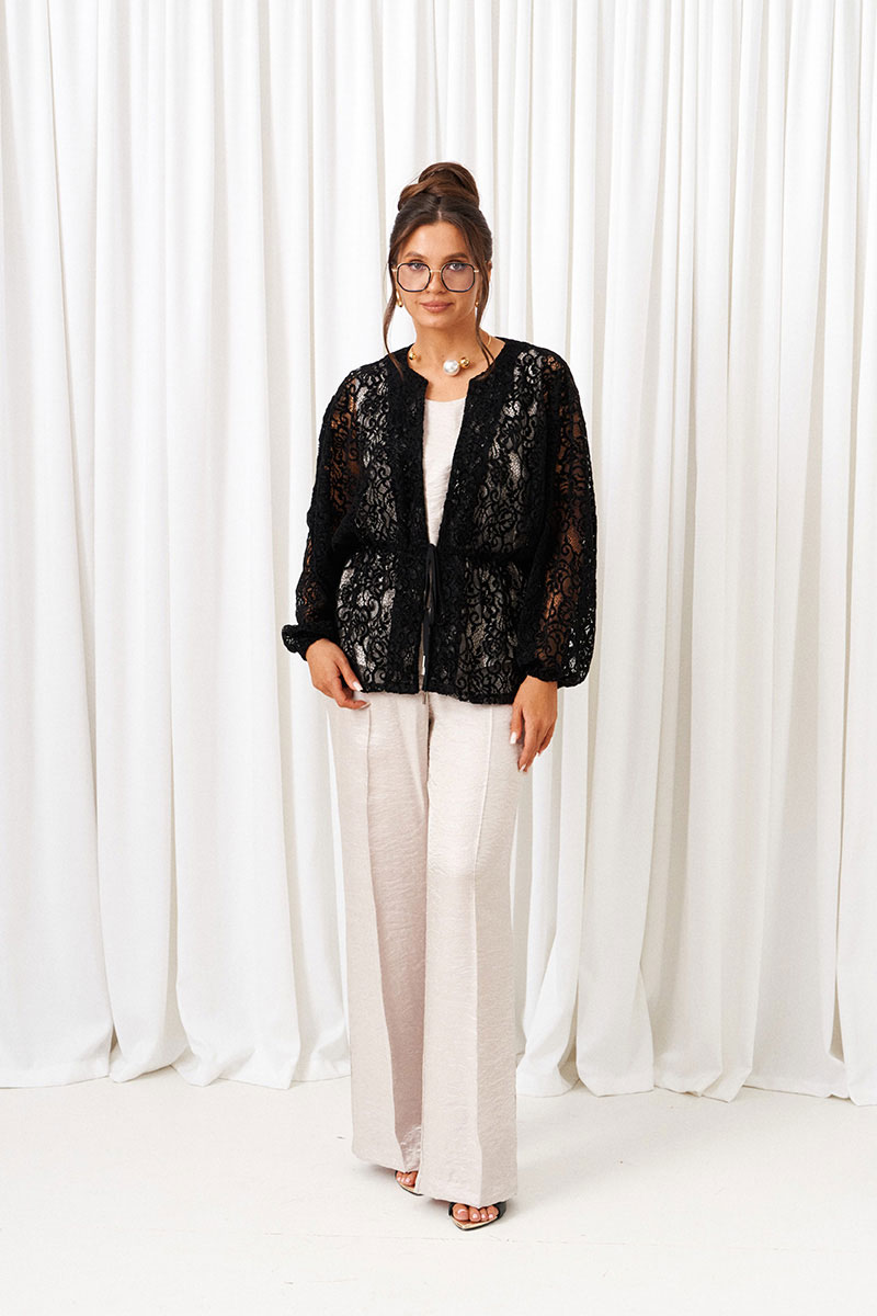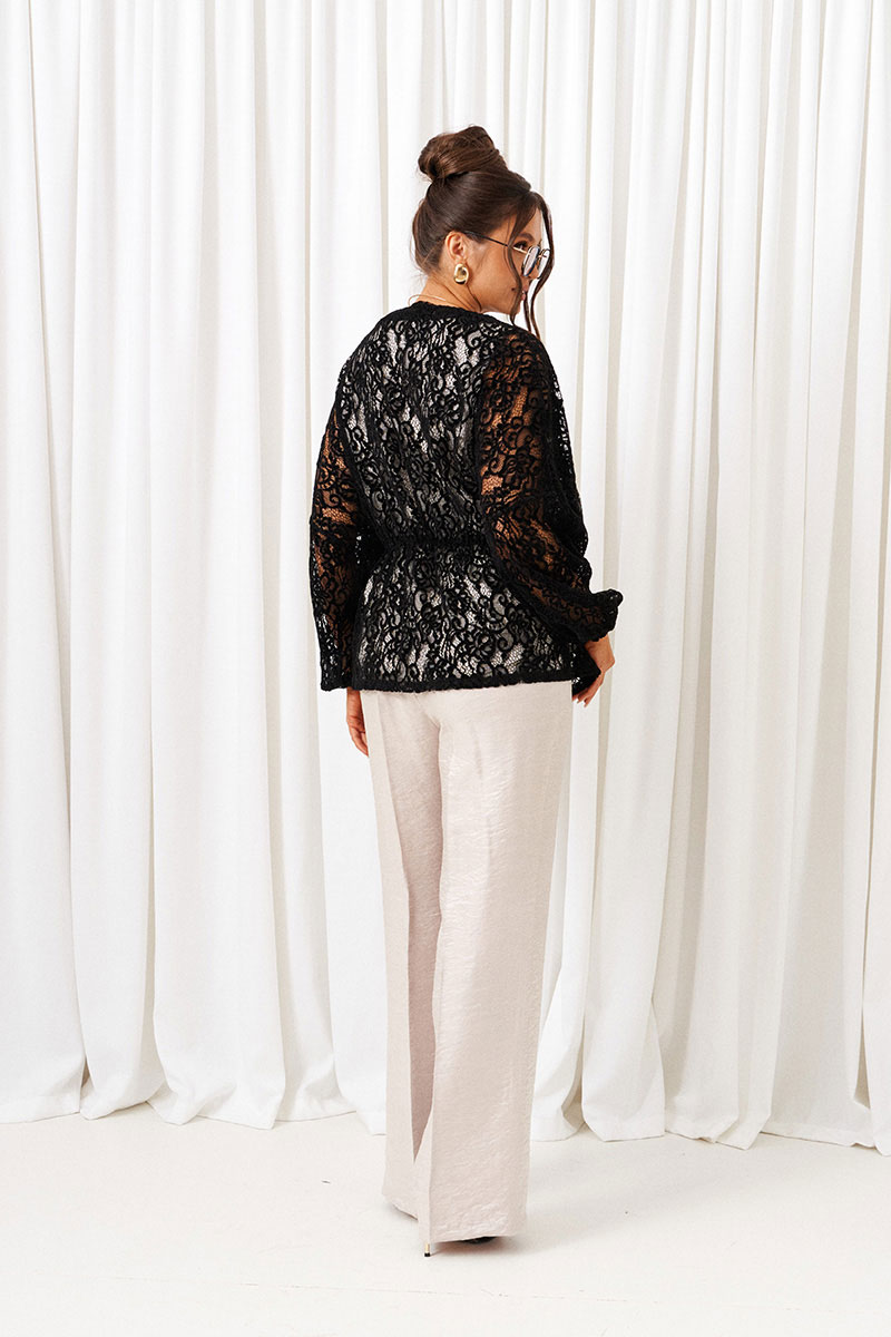 Брючный комплект в комбинации сияющего роскошного атласа с эффектным кружевом не останется незаметным!