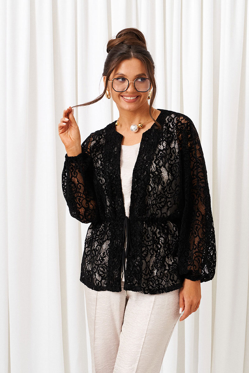 свободного силуэта с фиксацией по талии на завязки с декоративными наконечниками.