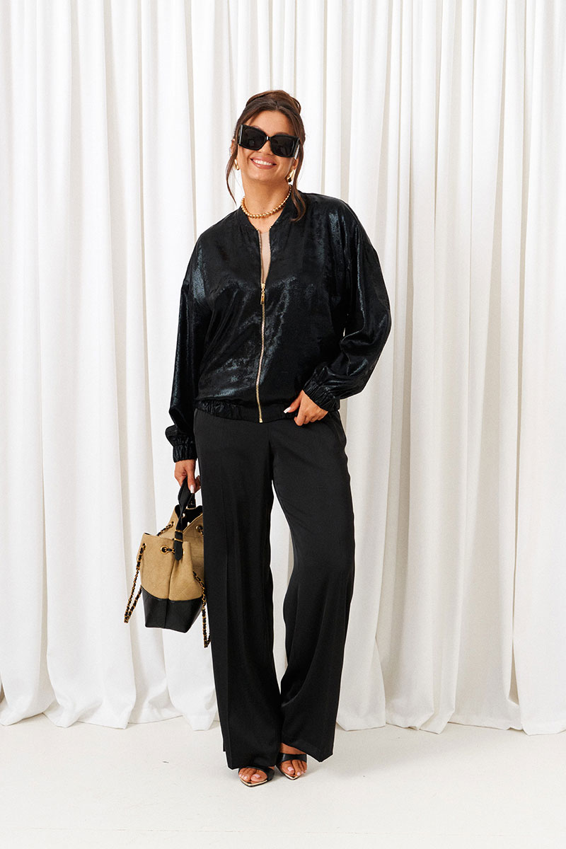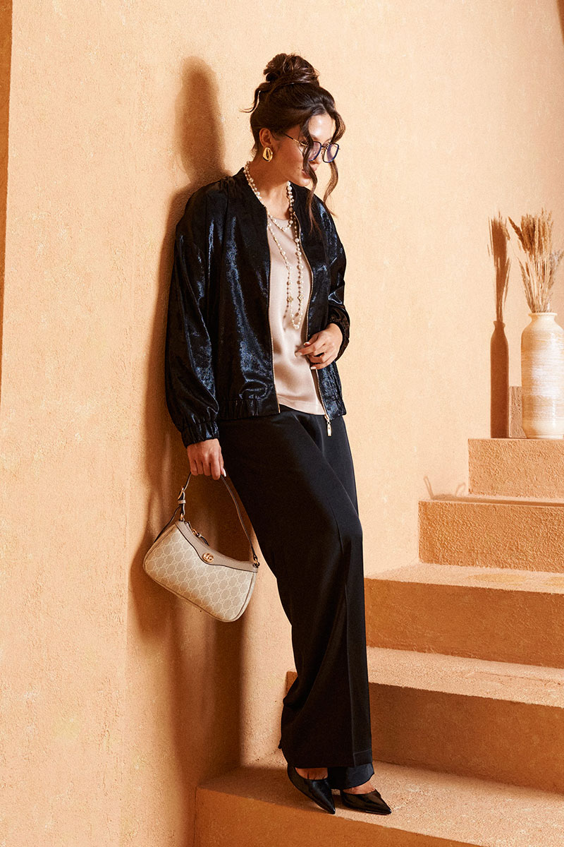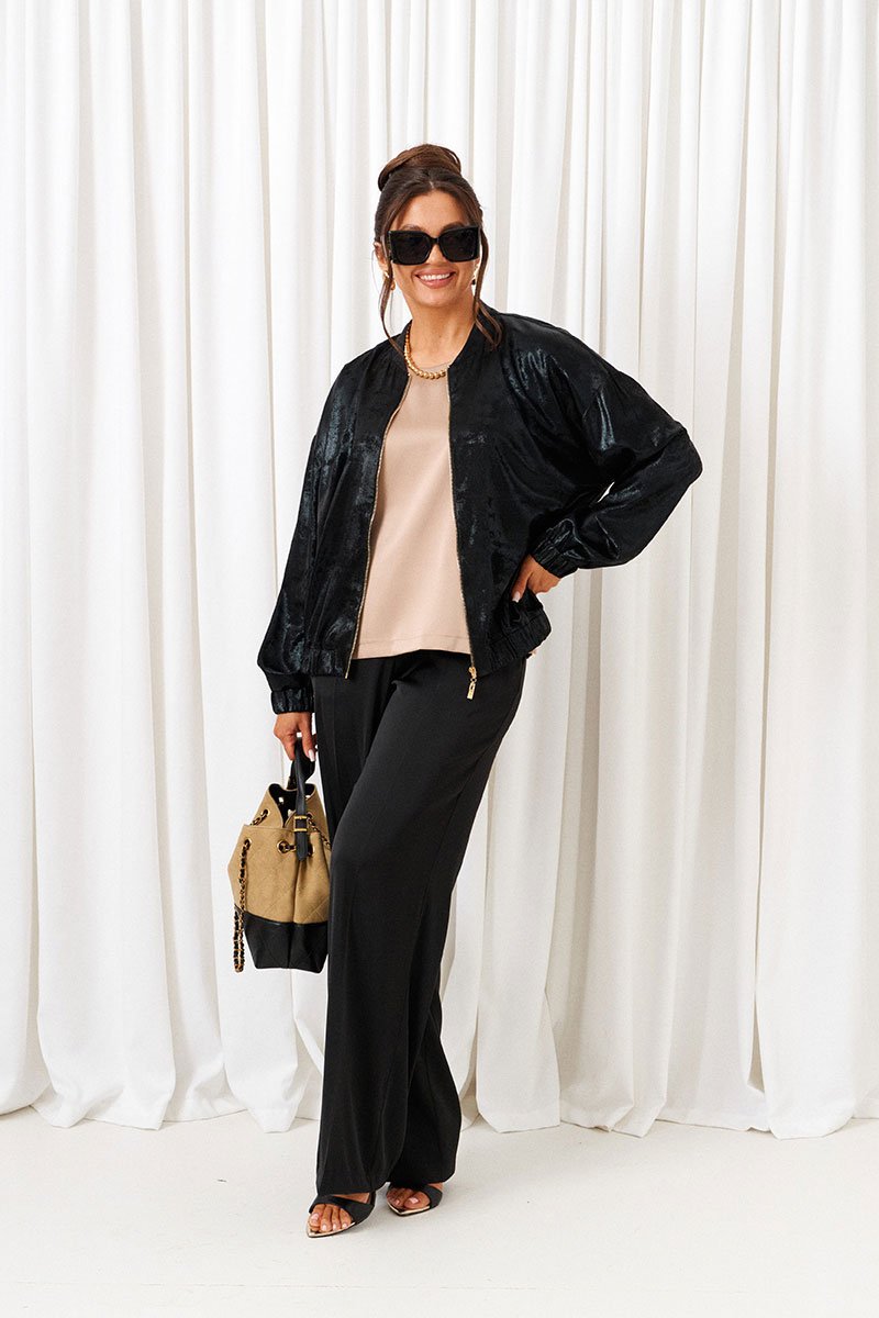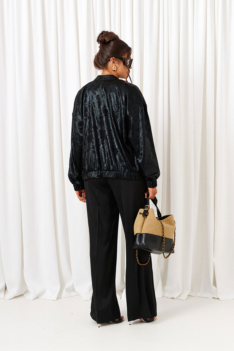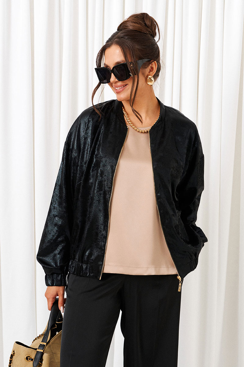 Блузон свободного силуэта тип «бомбер» с удлиненной линией плеча.