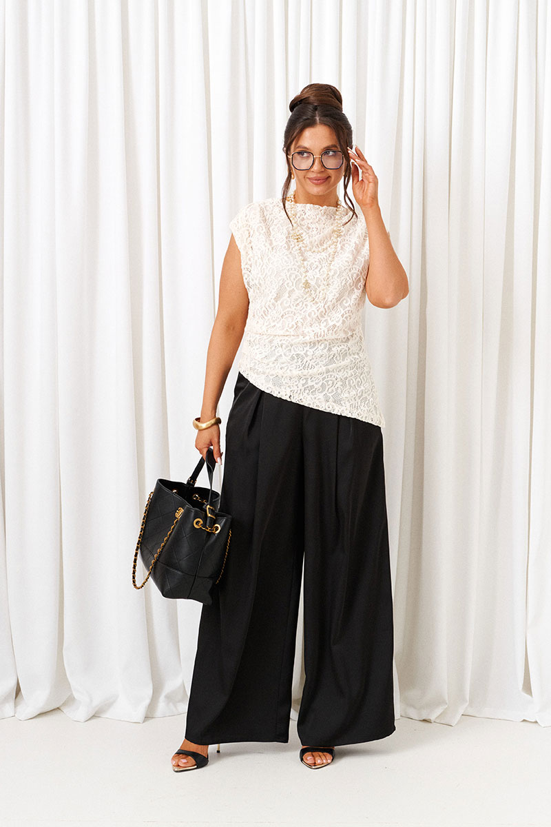 Брючный комплект в комбинации сияющего роскошного атласа с эффектным кружевом не останется незаметным!