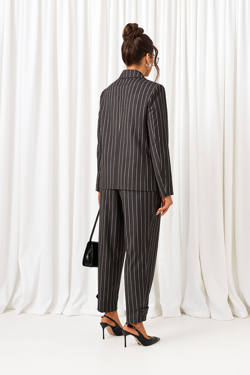 Брючный костюм из изысканного полотна в полоску идеально подходит для торжественных случаев и не только. Оба изделия можно смело комбинировать по отдельности с другими вещами Вашего гардероба.