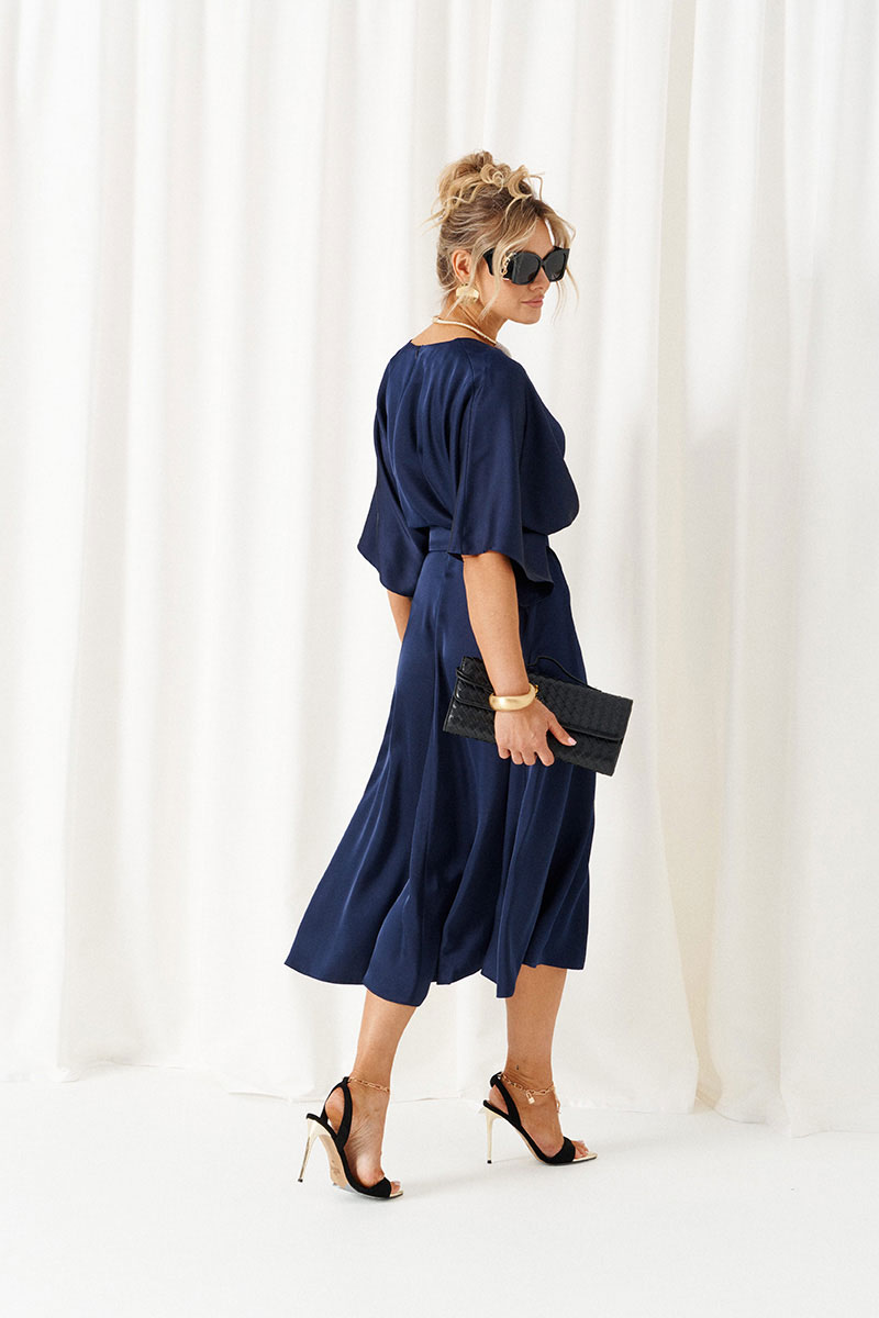 В комплекте к платью прилагается широкий пояс на пряжке.