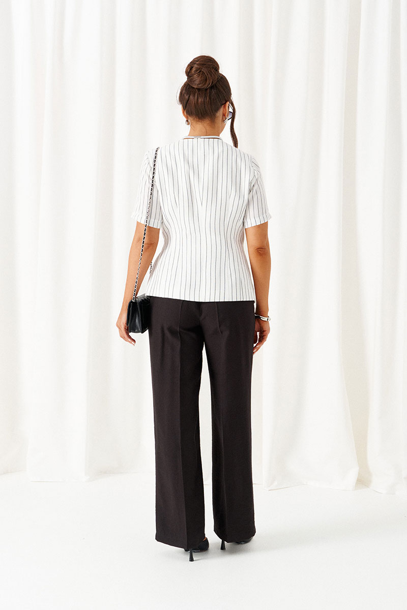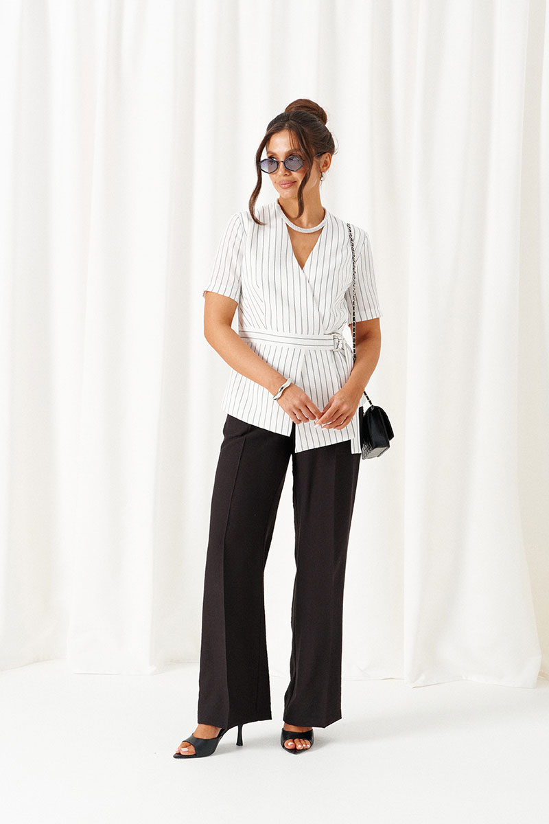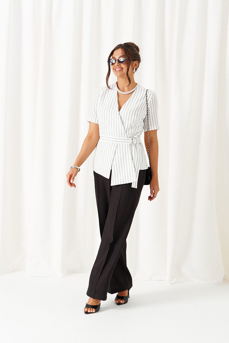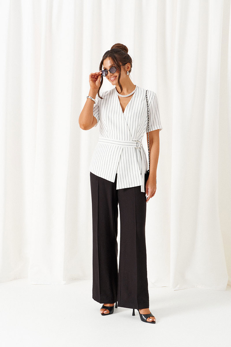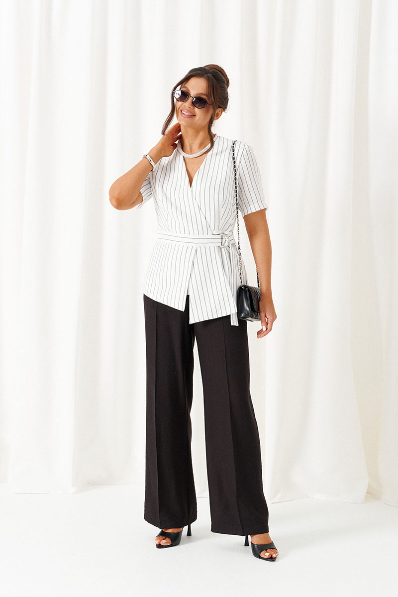 Брюки классические, свободные с боковыми подрезами, имитирующими карманы.