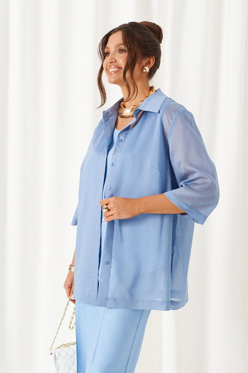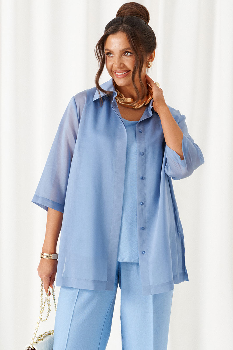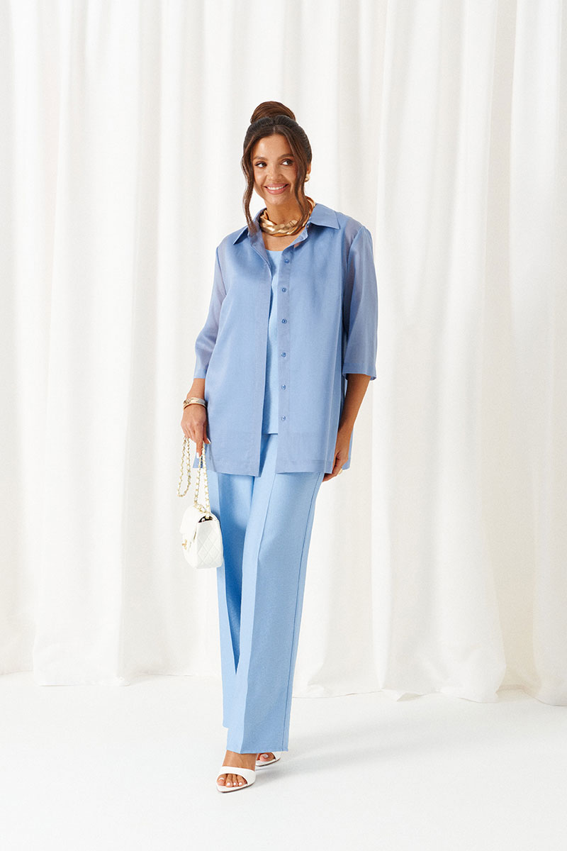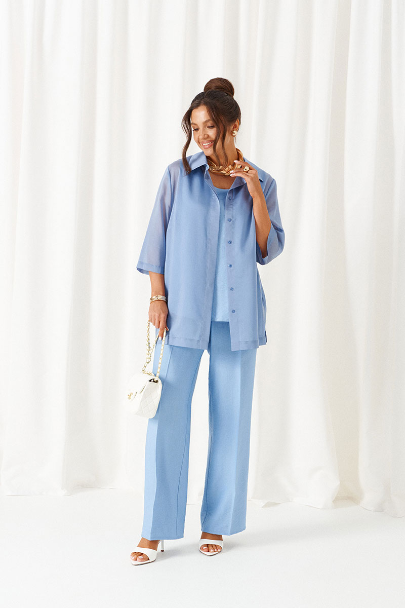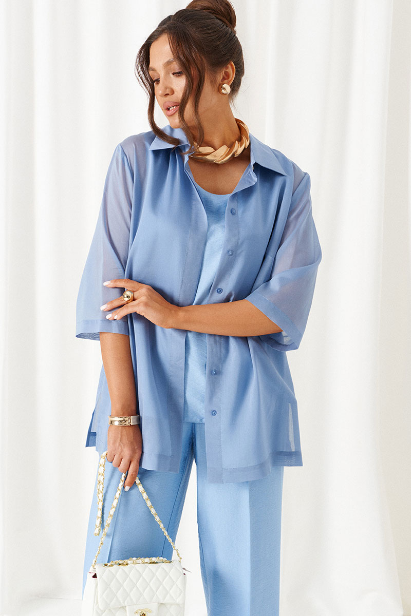 Комплект с блузкой из вуали, льняных брюк и топа – изделие вне времени и трендов, созданное в различных интерпретациях: от оверсайза до классики. Предназначен для повседневного и выходного использования. Найдет применение в жаркую и прохладную летнюю погоду.