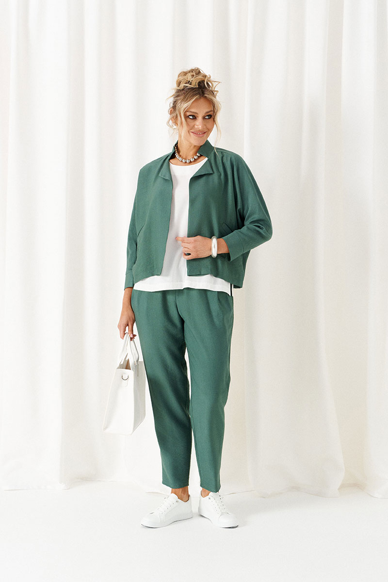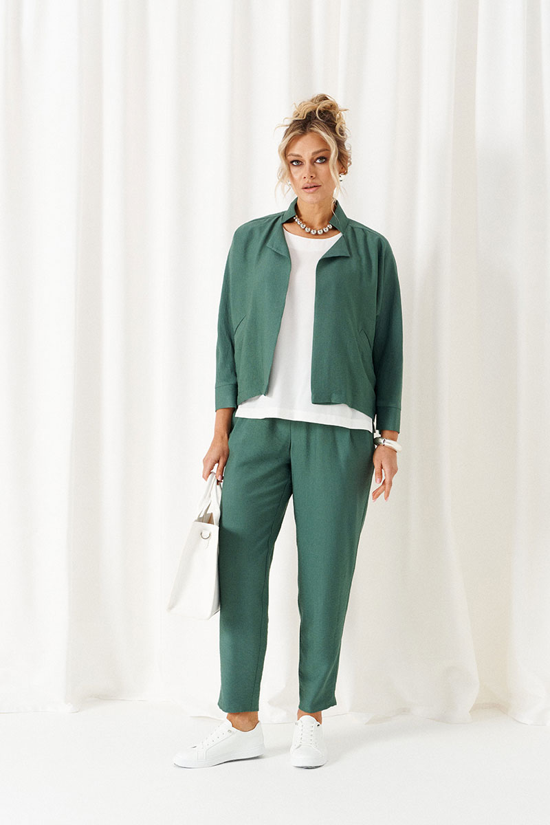 - Состав: жакет; брюки: лен 80%; вискоза 20%; блузка: ПЭ 68%; вискоза 27%; спандекс 5%
