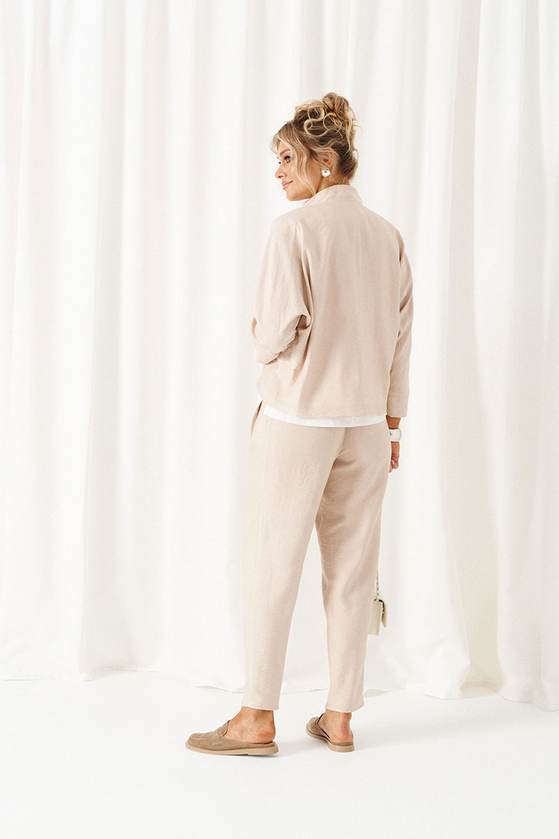 - Состав: жакет; брюки: лен 80%; вискоза 20%; блузка: ПЭ 68%; вискоза 27%; спандекс 5%