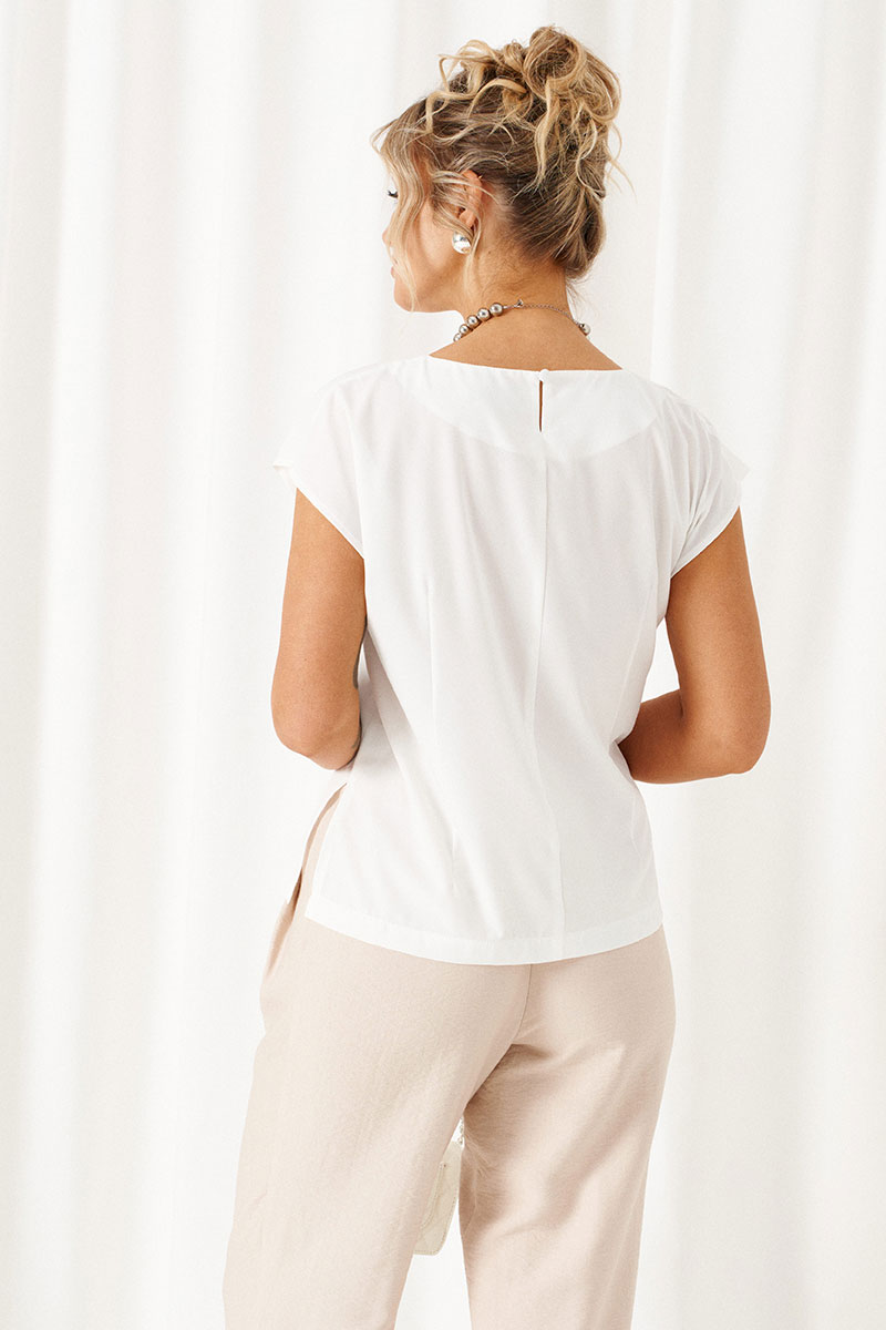 Блузка полуприлегающего силуэта, выполнена из тонкого смесового вискозного полотна.